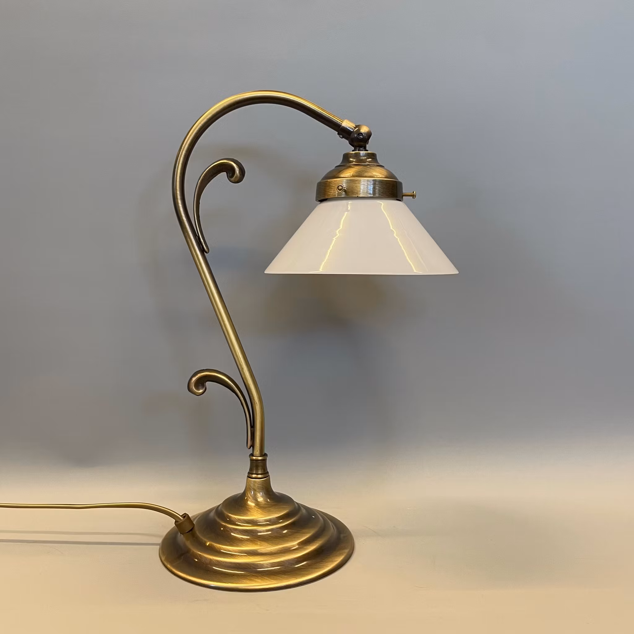 En väldigt vacker bordslampa i jugendstil med fot i antikoxiderad mässing.