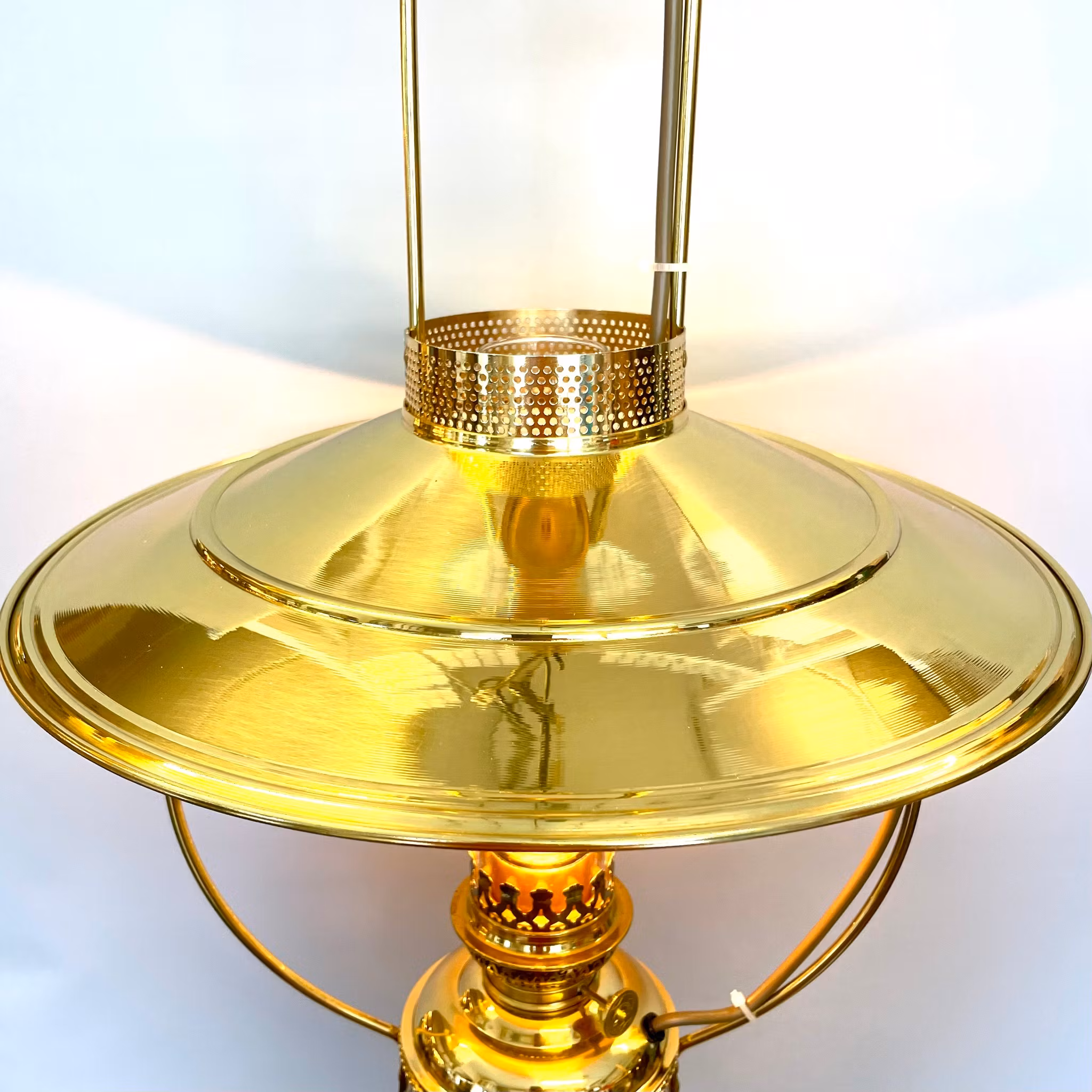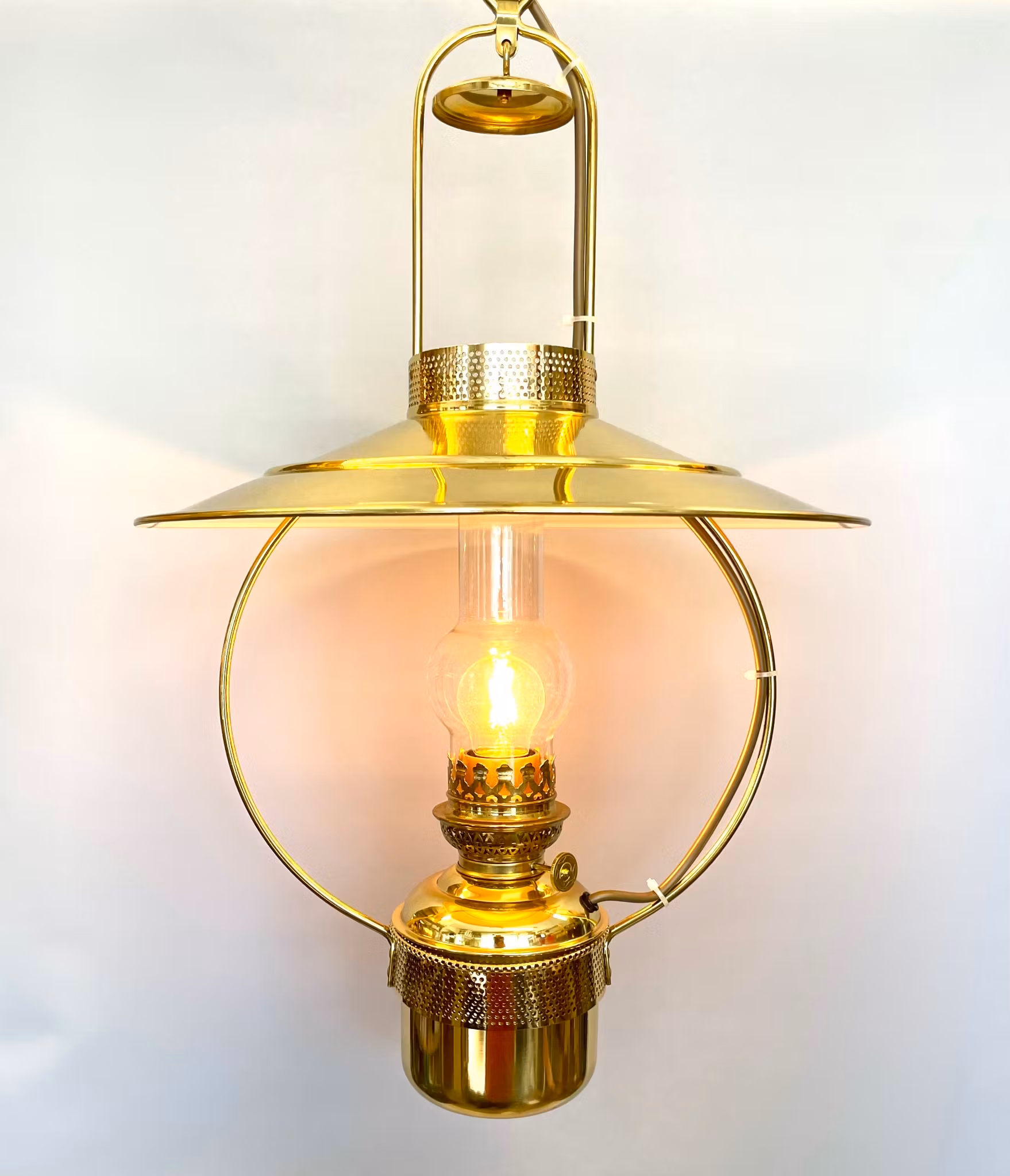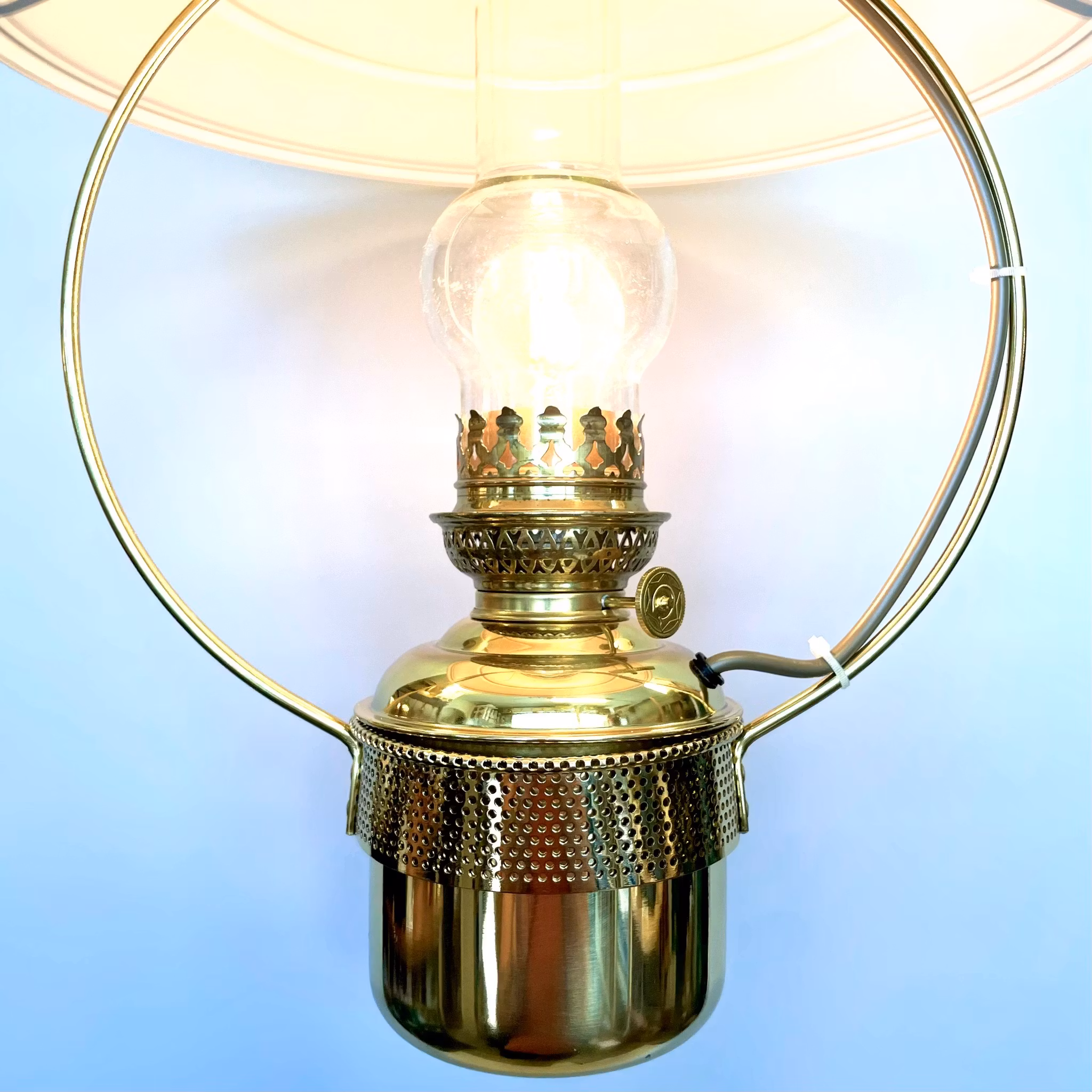 En klassisk "fotogenlampa" i elektriskt utförande i lackad mässing.