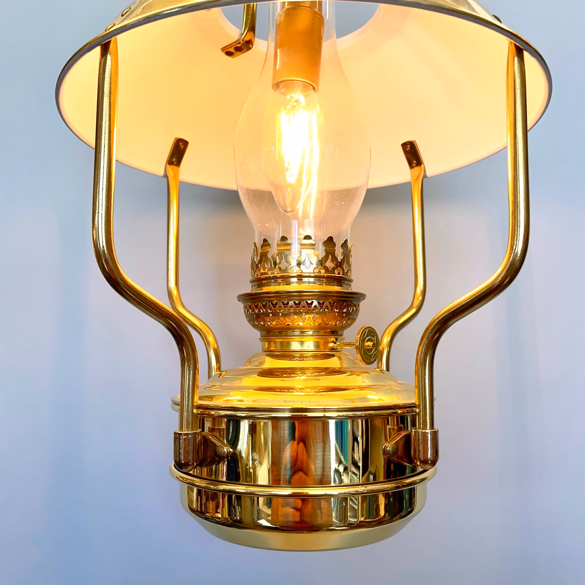 En klassisk "fotogenlampa" i elektriskt utförande i lackad mässing.
