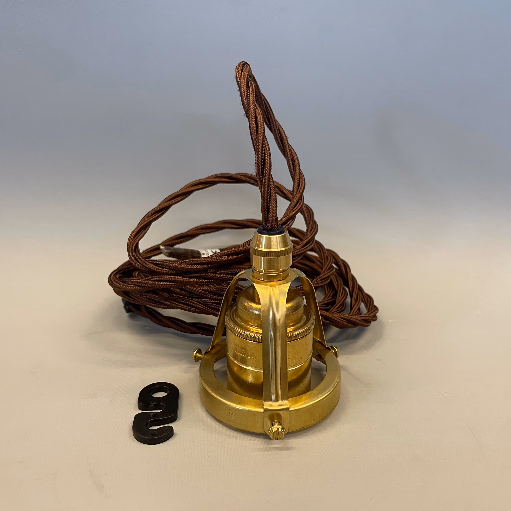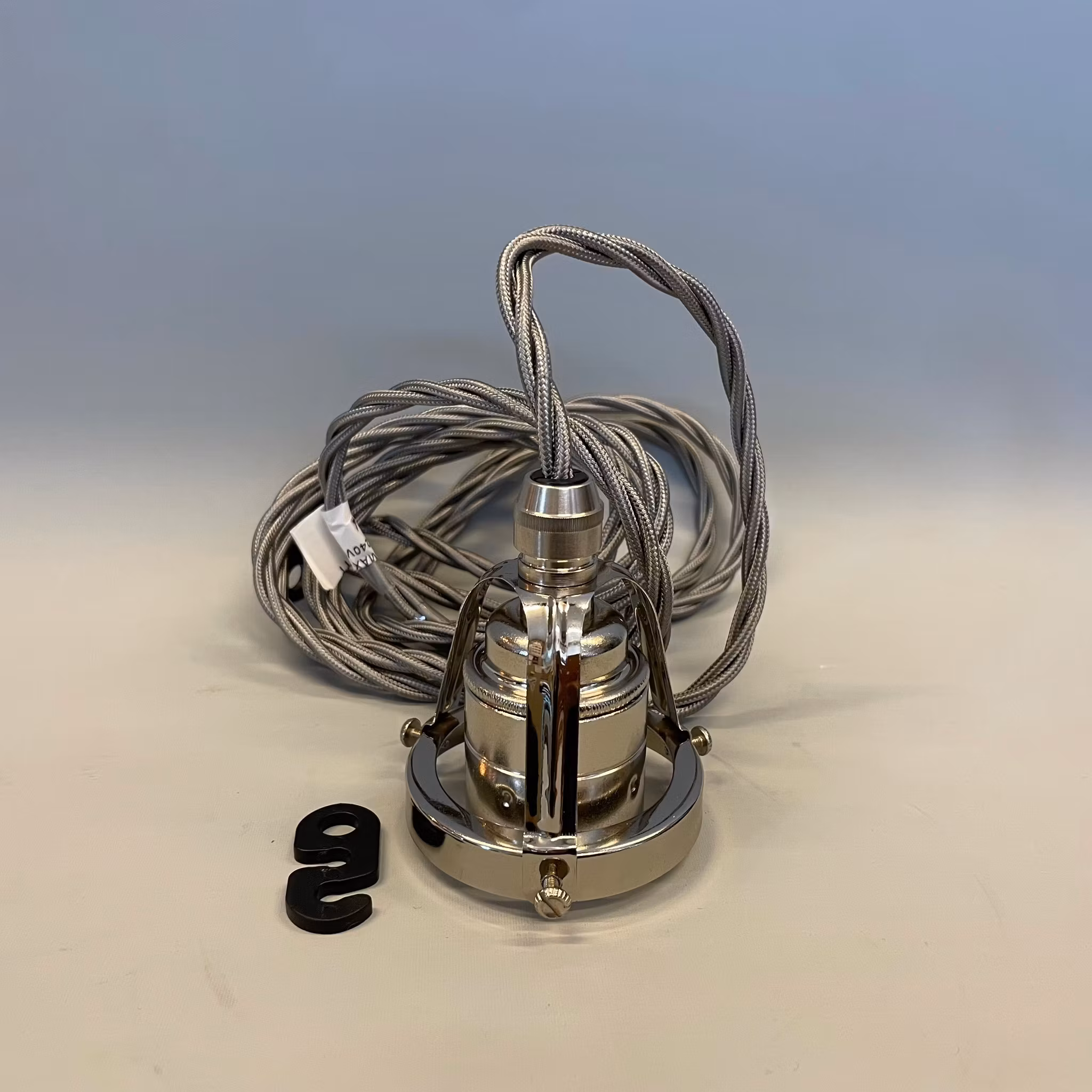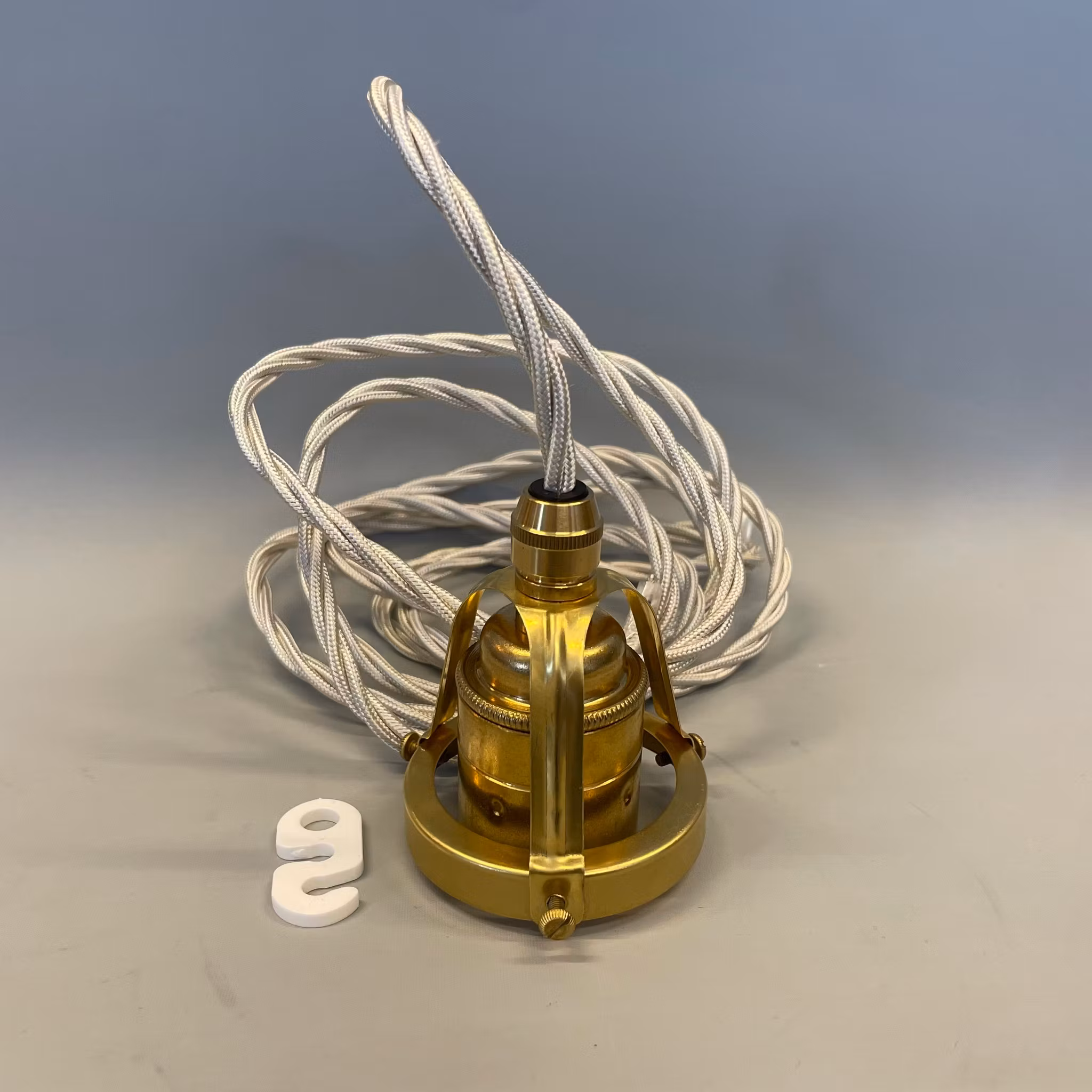 2) Fantastiska jordade tygsladdsupphäng med cirka 230 cm kabel och klippt sladdände (för att själva montera valfri kontakt).