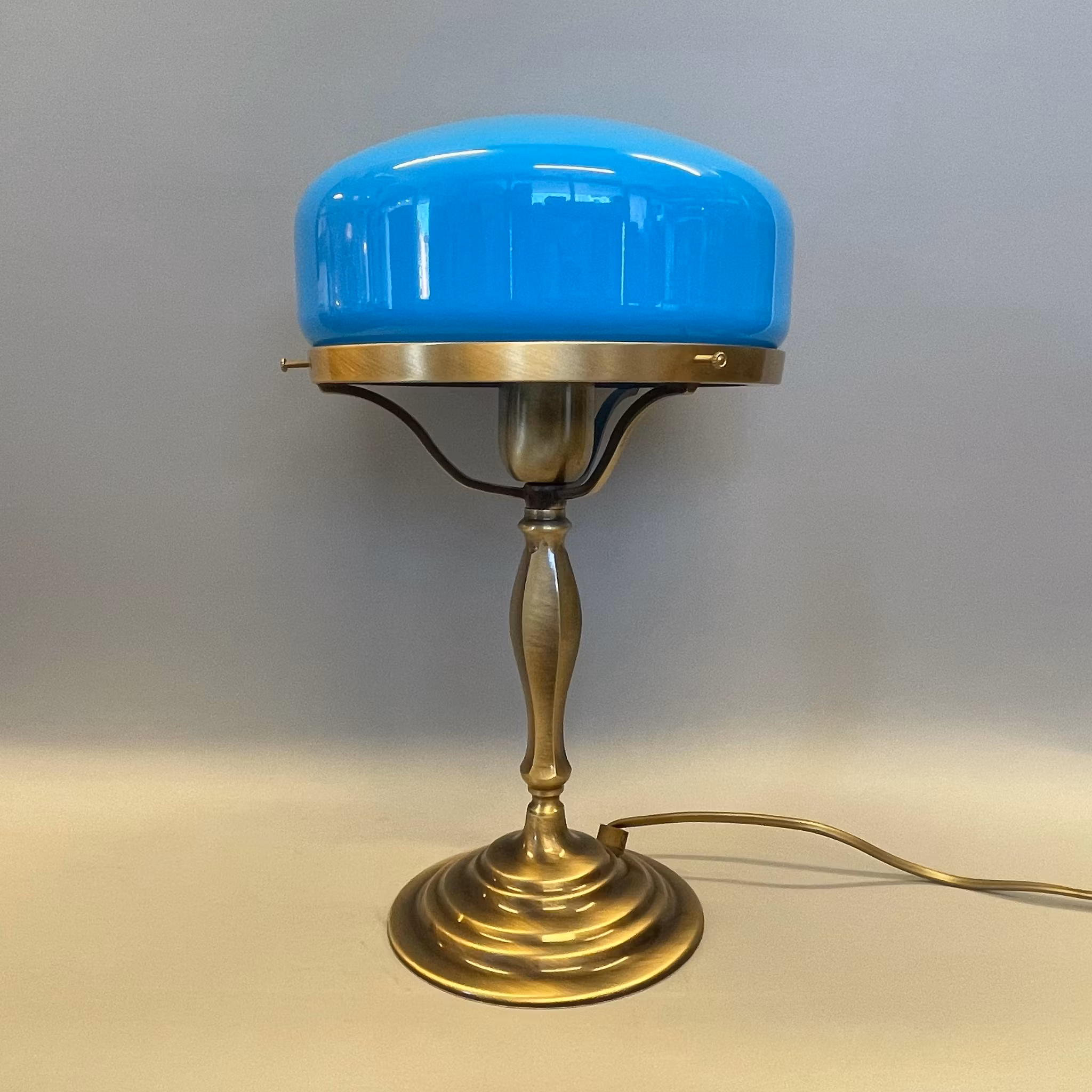 Blå klassisk glasskärm, 198 mm i nedre fattning.