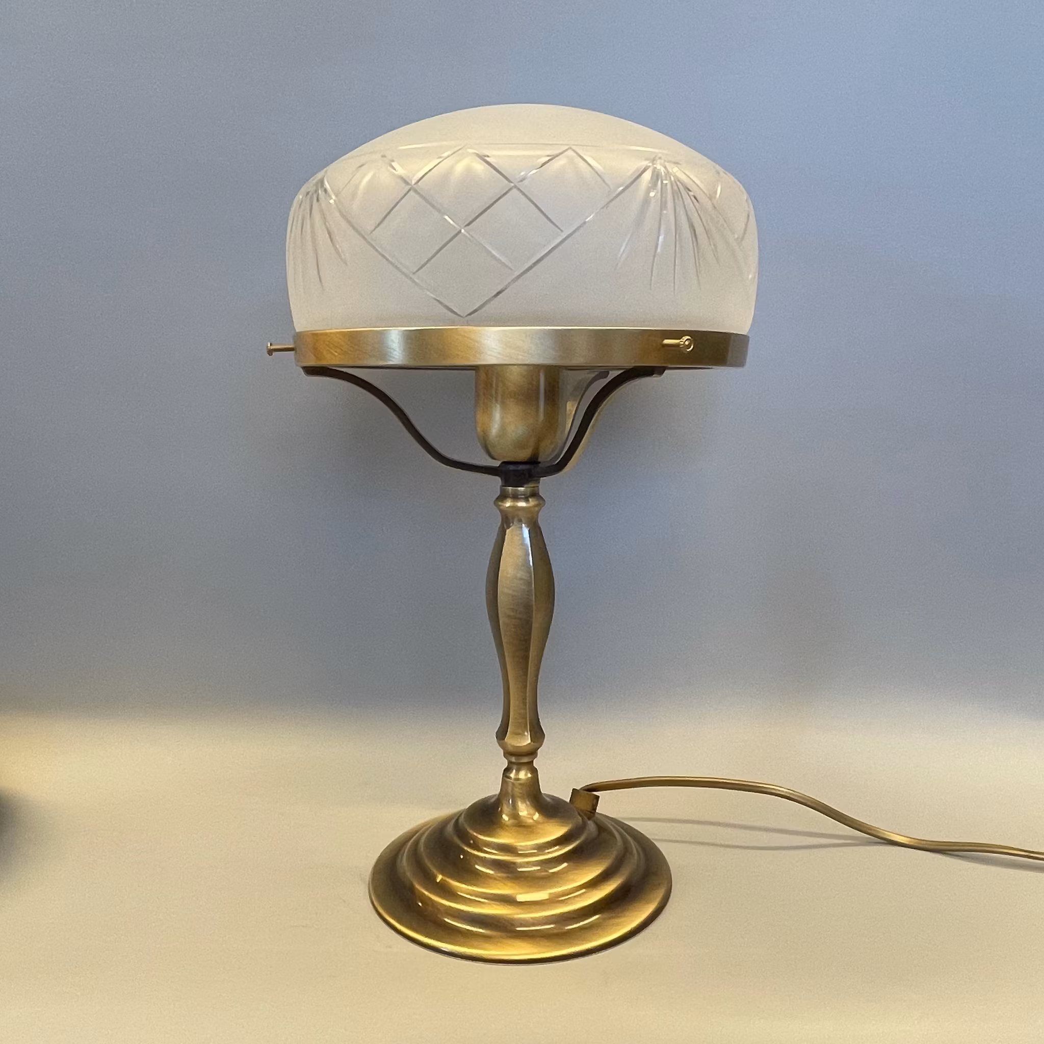 En klassisk Strindbergslampa med en antikoxiderad fot i mässing. Vår vackraste och mest tidlösa modell!