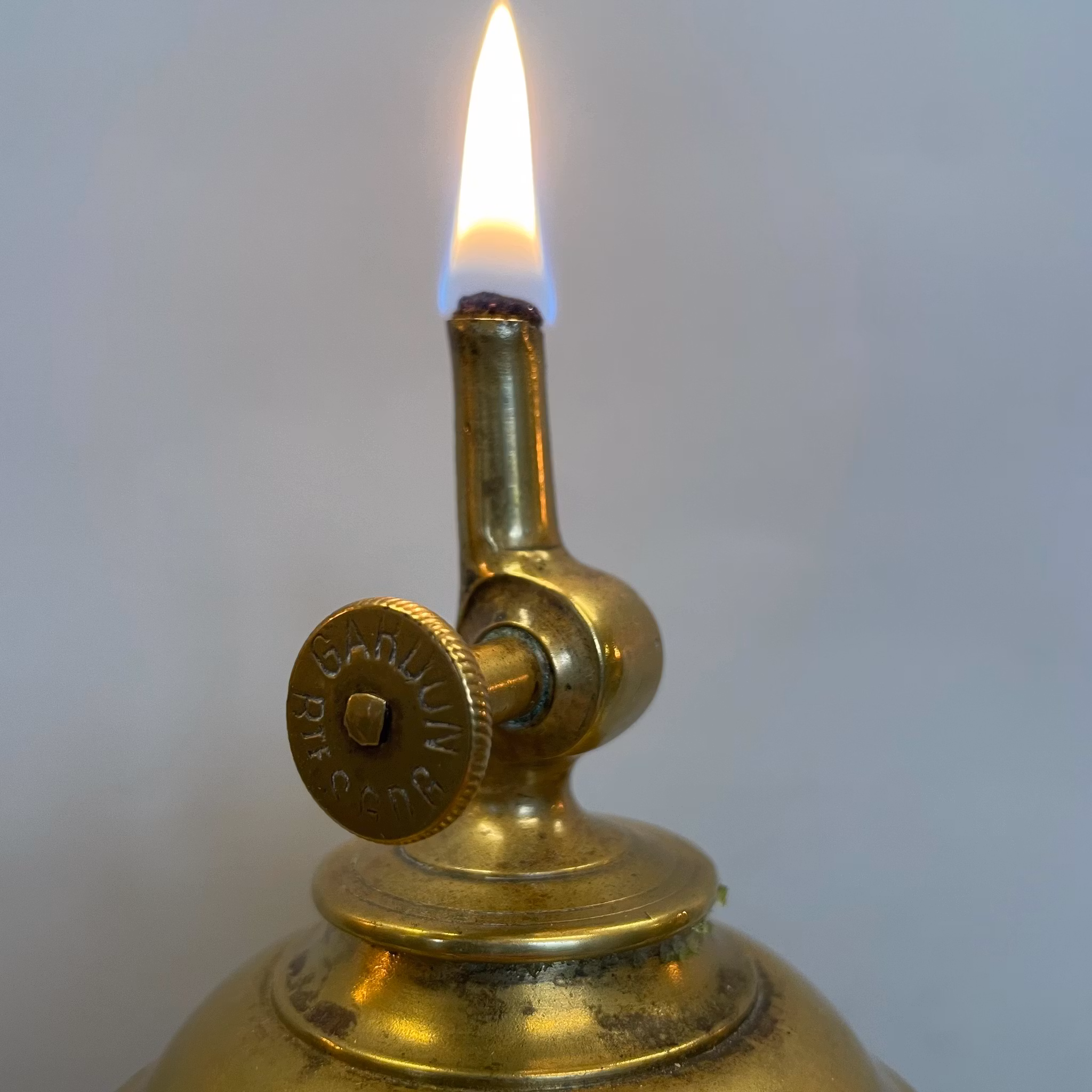 Nu säljer vi en riktig pärla! Ta chansen att äga en del av fotogenlampans historia! Här kommer en antik massiv Gardonlampa från Frankrike. Den brinner perfekt med vanlig lampolja och får inte tankas med bensin, även om den ursprungligen tillverkades som en bensinlampa(men då hade den lite annan konstruktion inuti).