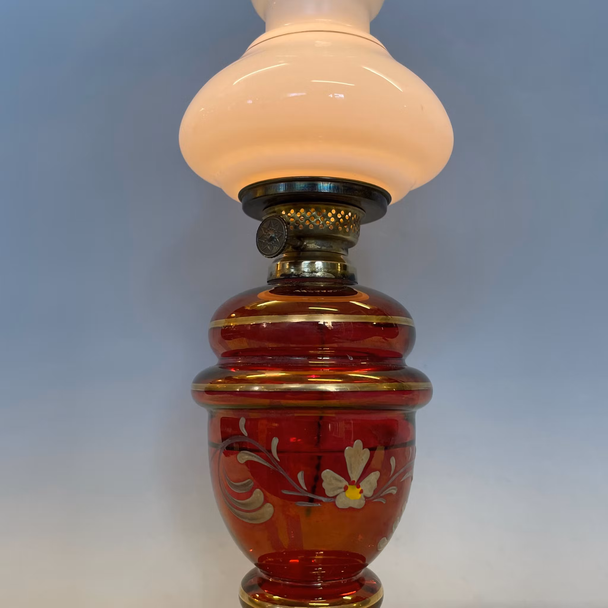 Alla våra äldre fotogenlampor är varsamt renoverade och testeldade i minst 1 timme i vår lampverkstad. Oftast finns det endast 1 exemplar av varje lampa.