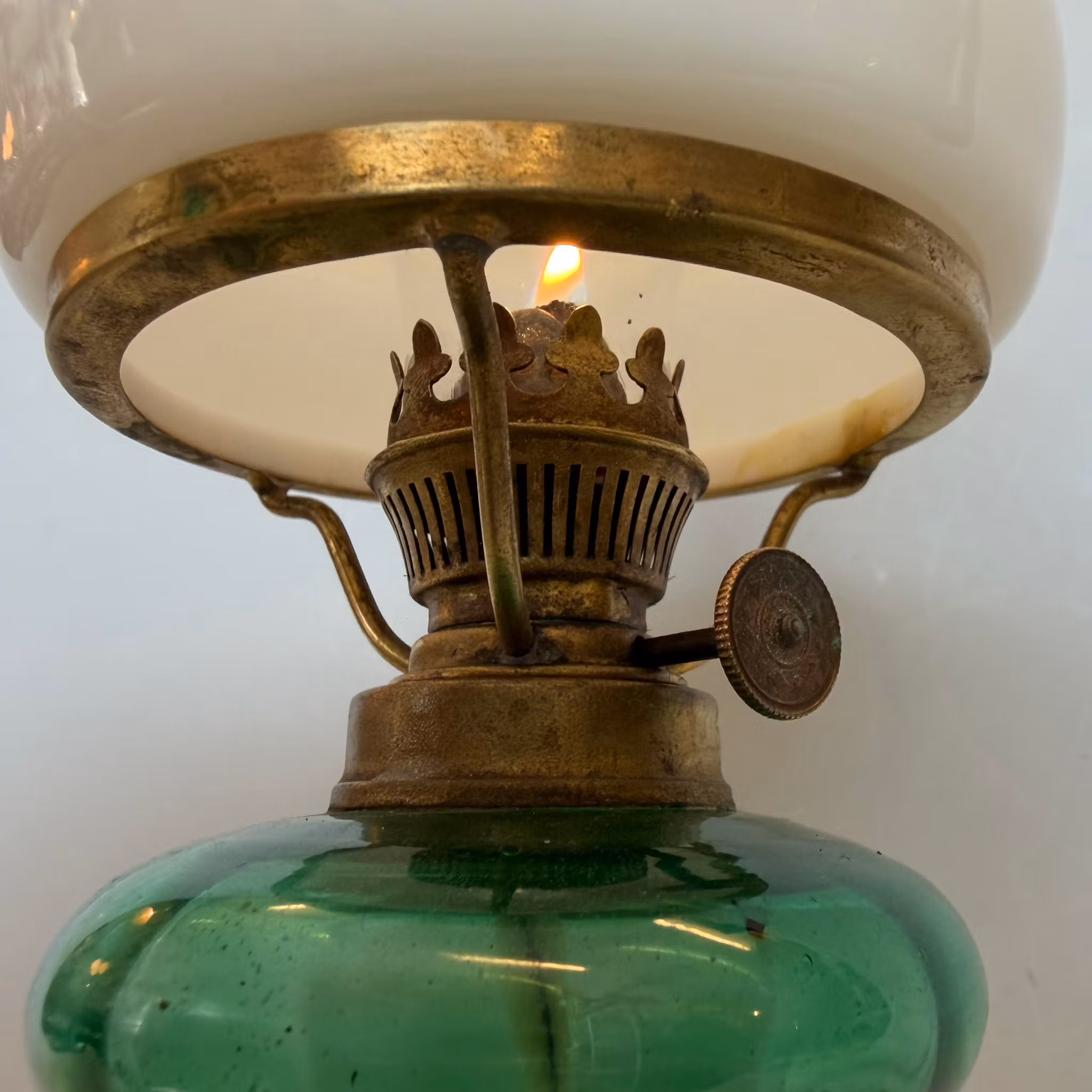 Alla våra äldre fotogenlampor är varsamt renoverade och testeldade i minst 1 timme i vår lampverkstad. Oftast finns varje lampa bara i ett enda exemplar.