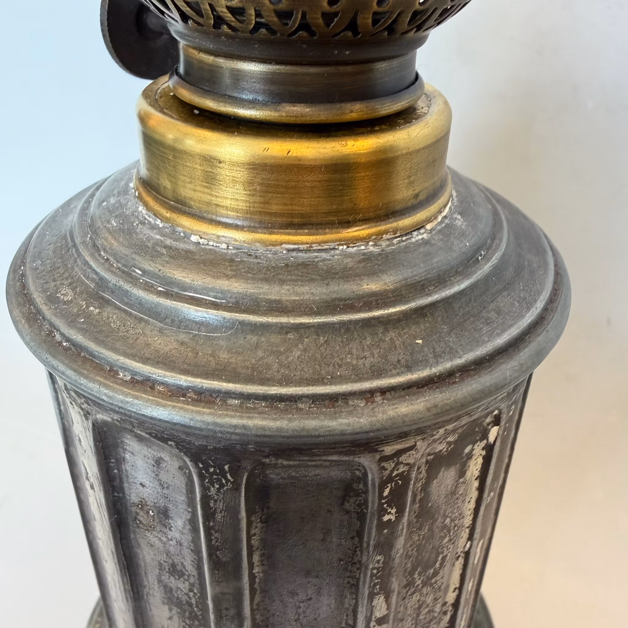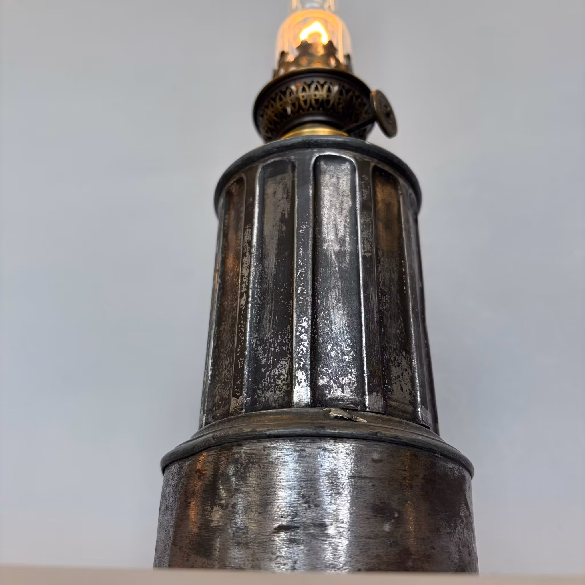 Här kommer en riktig pärla till dig som älskar riktigt gamla fotogenlampor. Foten är en klassisk moderatörlampa - dvs fotogenlampans föregångare som kom någon gång på 1830-talet och sedan försvann långsamt under 1870-tal när fotogenet övertog rovoljans roll som främsta bränsle. Just nu har vi 2 sådana ombyggda konverterade moderatörlampor som man byggt om till fotogendrift vid okänd tidpunkt.