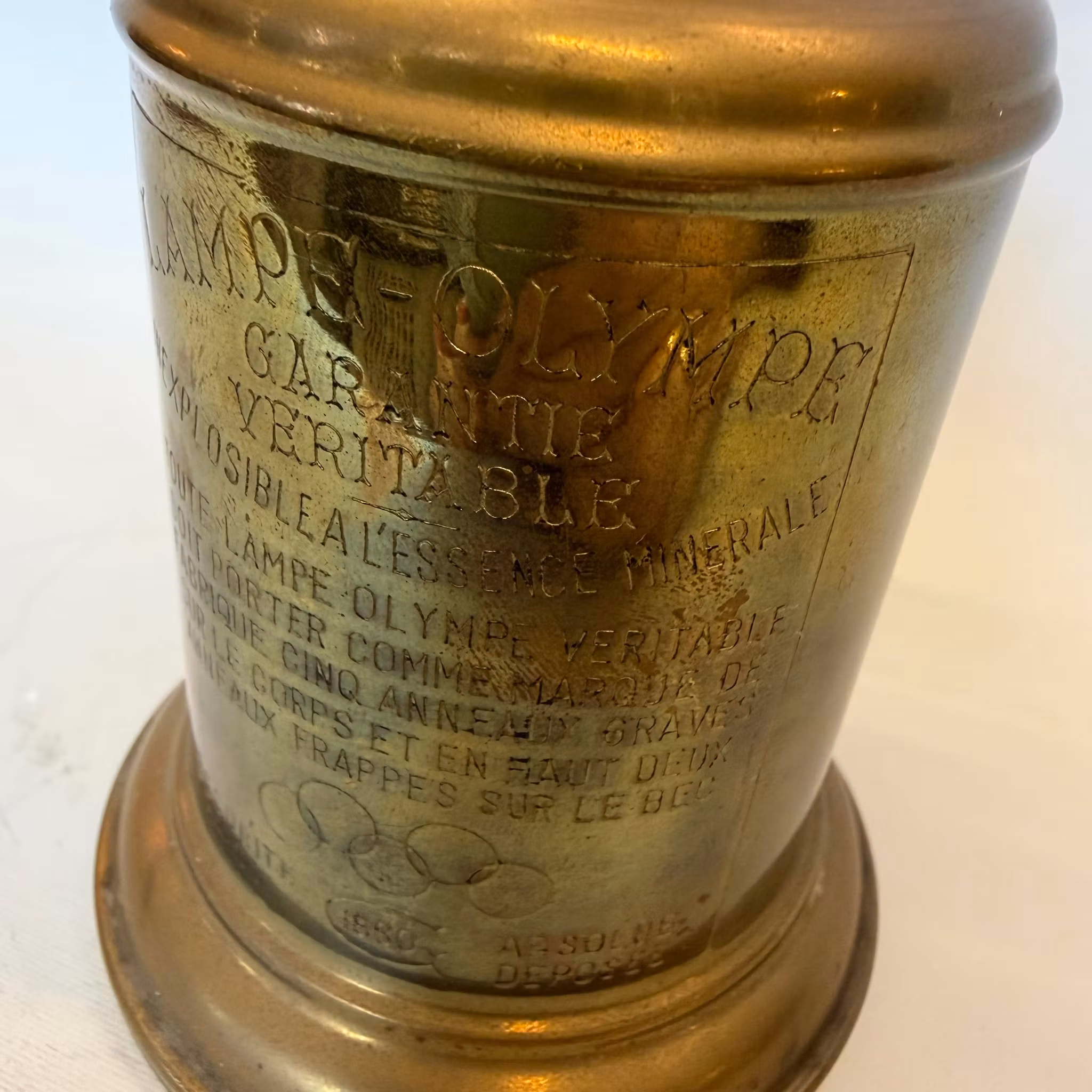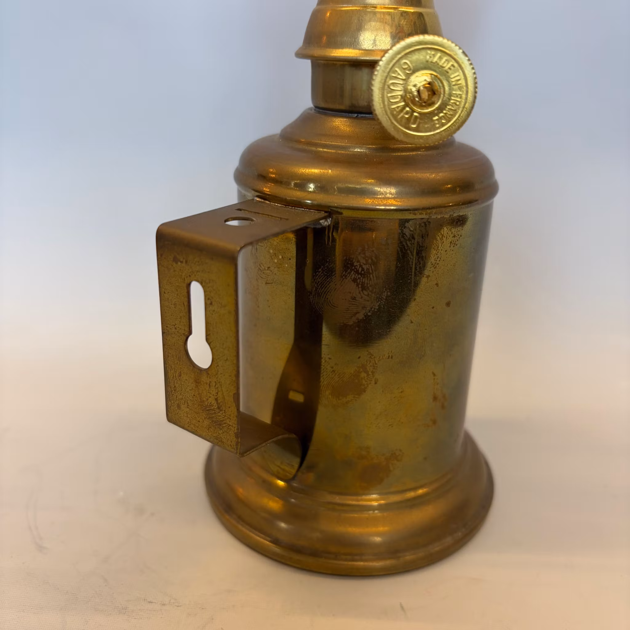 Mindre fotogenlampa - fotens diameter är 8 cm. Patinerad mässing.