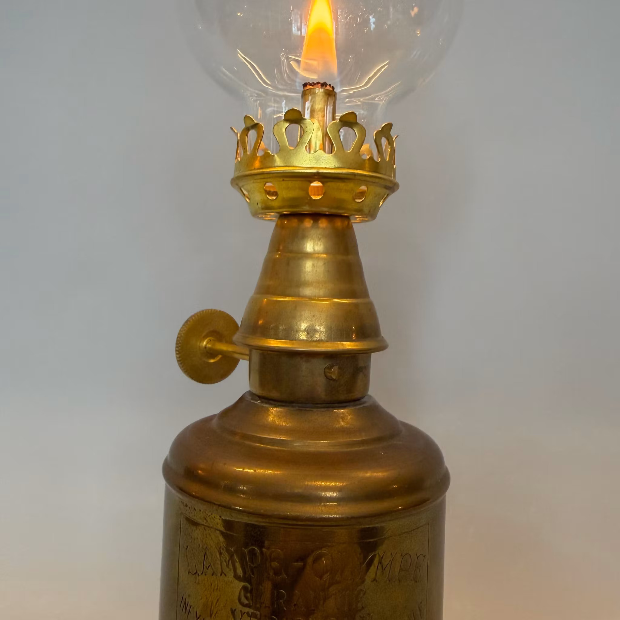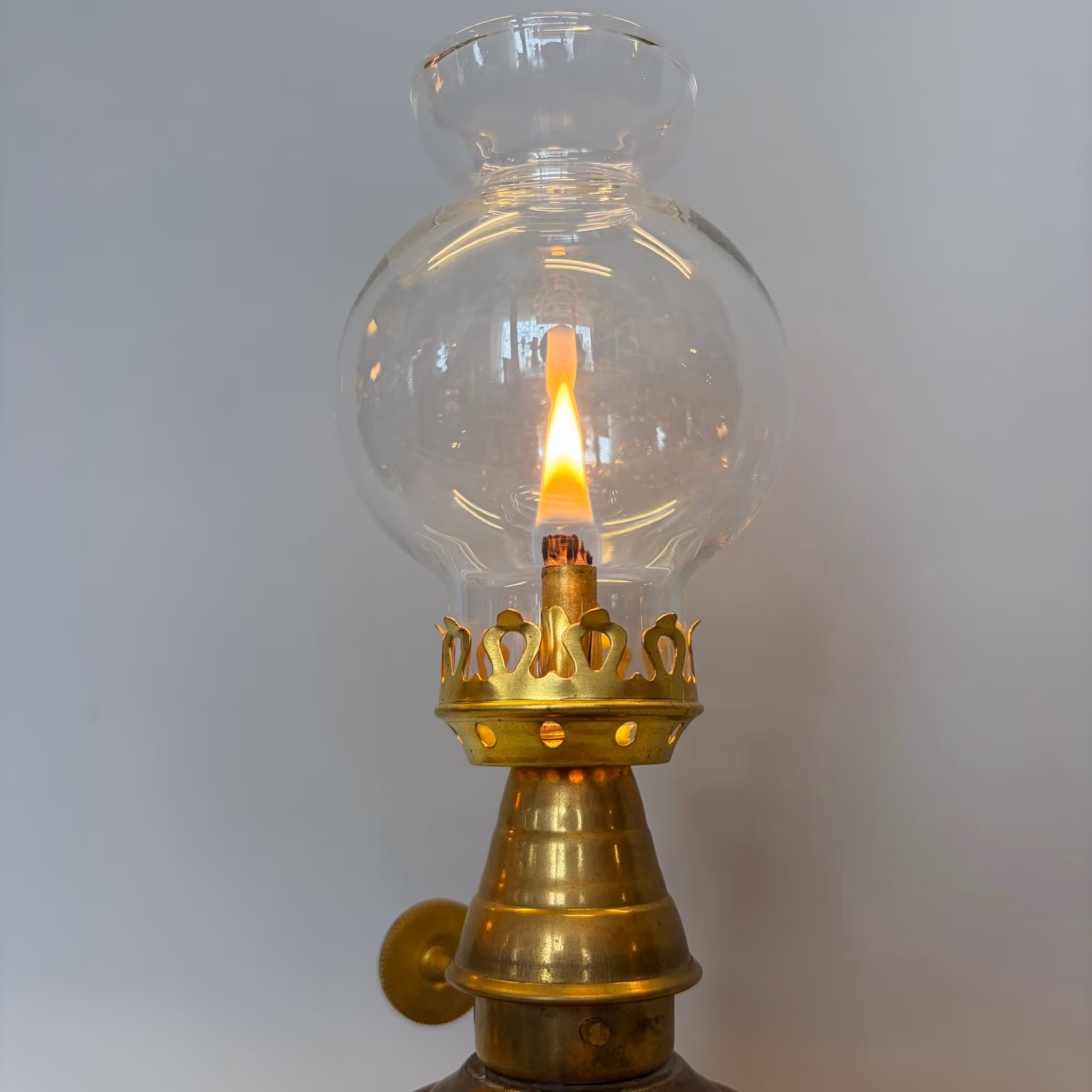 Alla våra äldre fotogenlampor är varsamt renoverade och testeldade i minst 1 timme i vår lampverkstad.