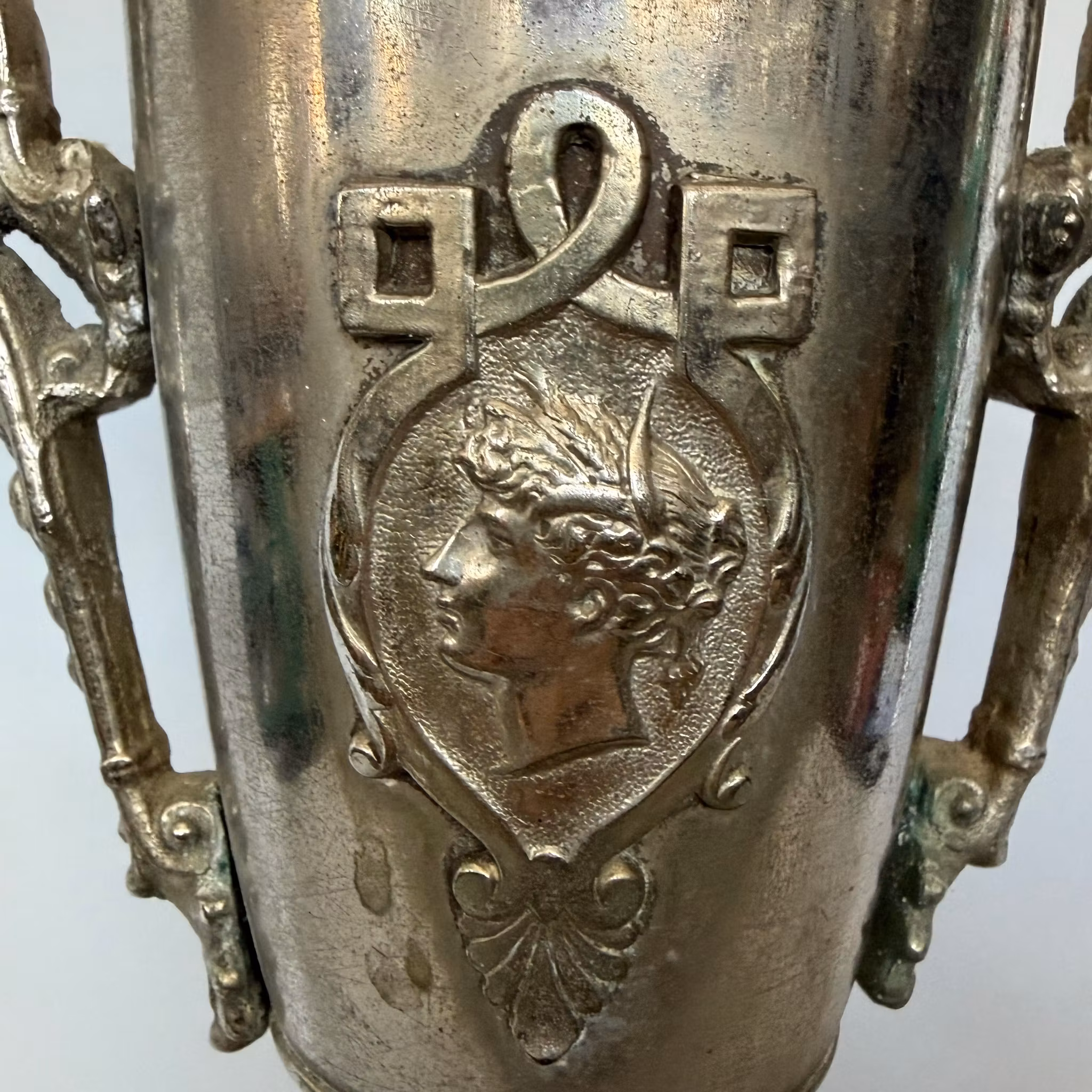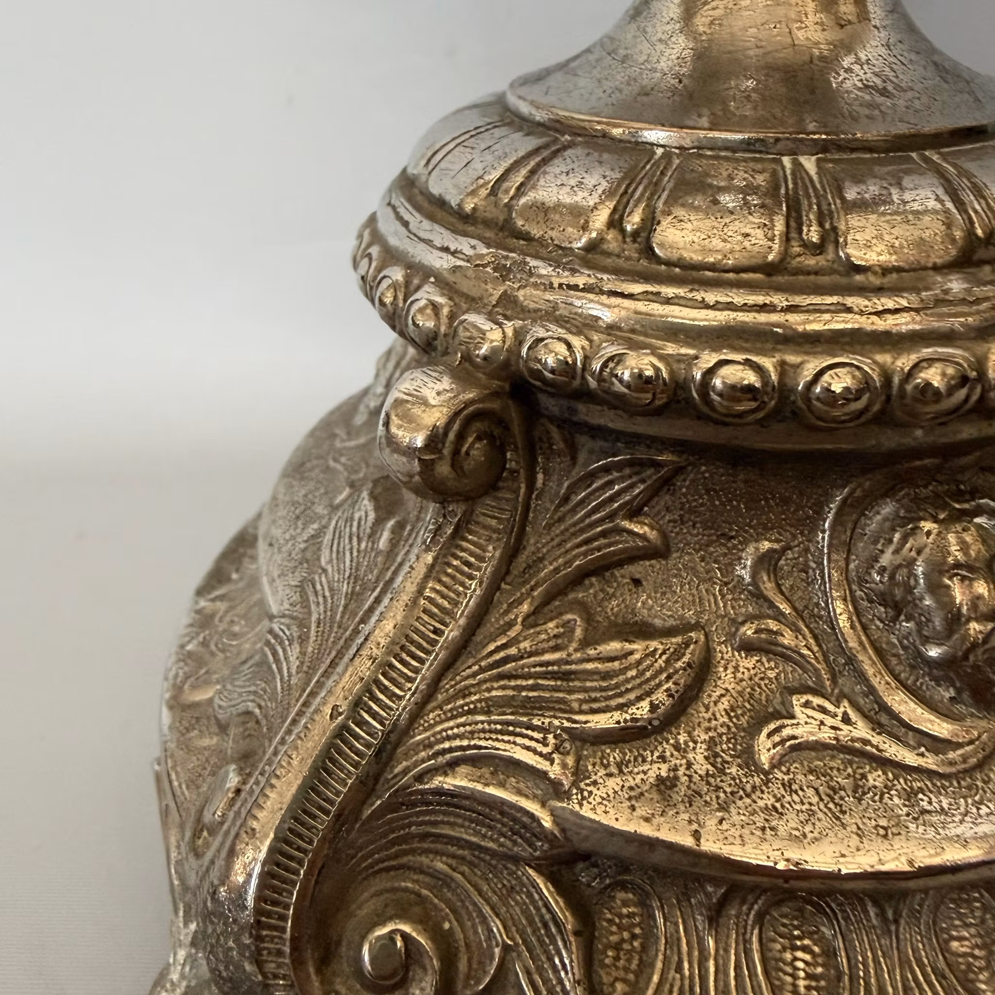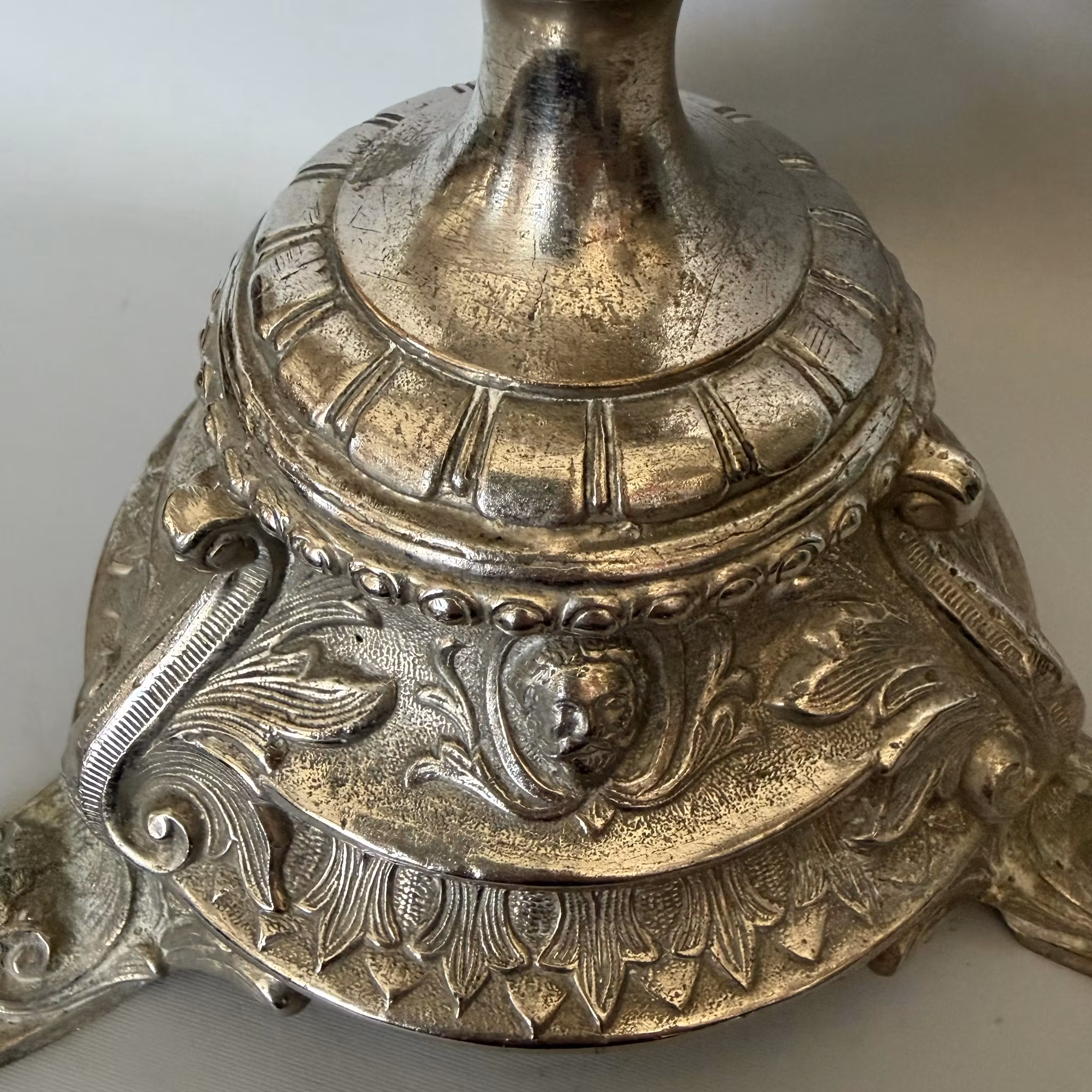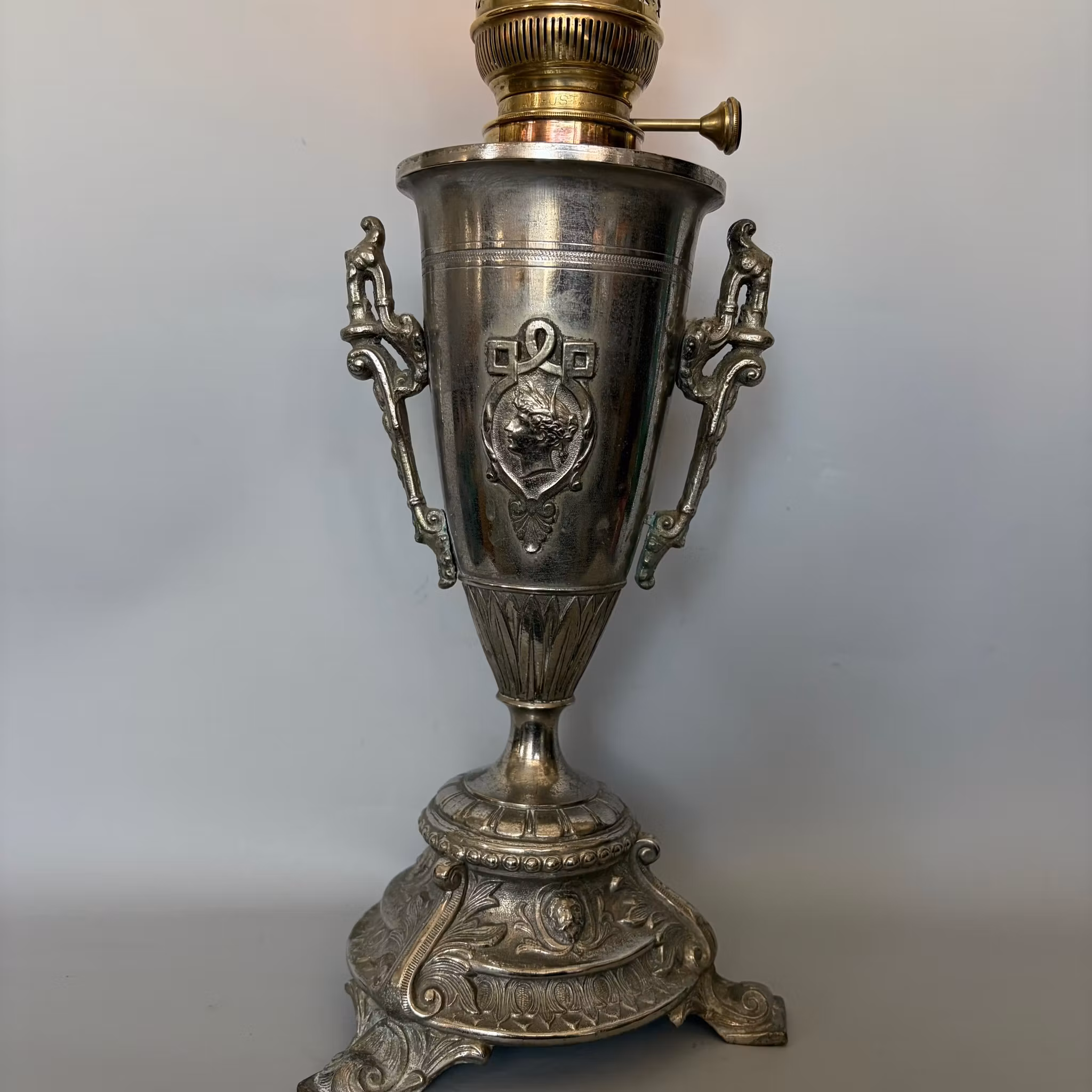 Fotogenlampa antik förnicklad. "Handtagen" sitter lite löst monterade.