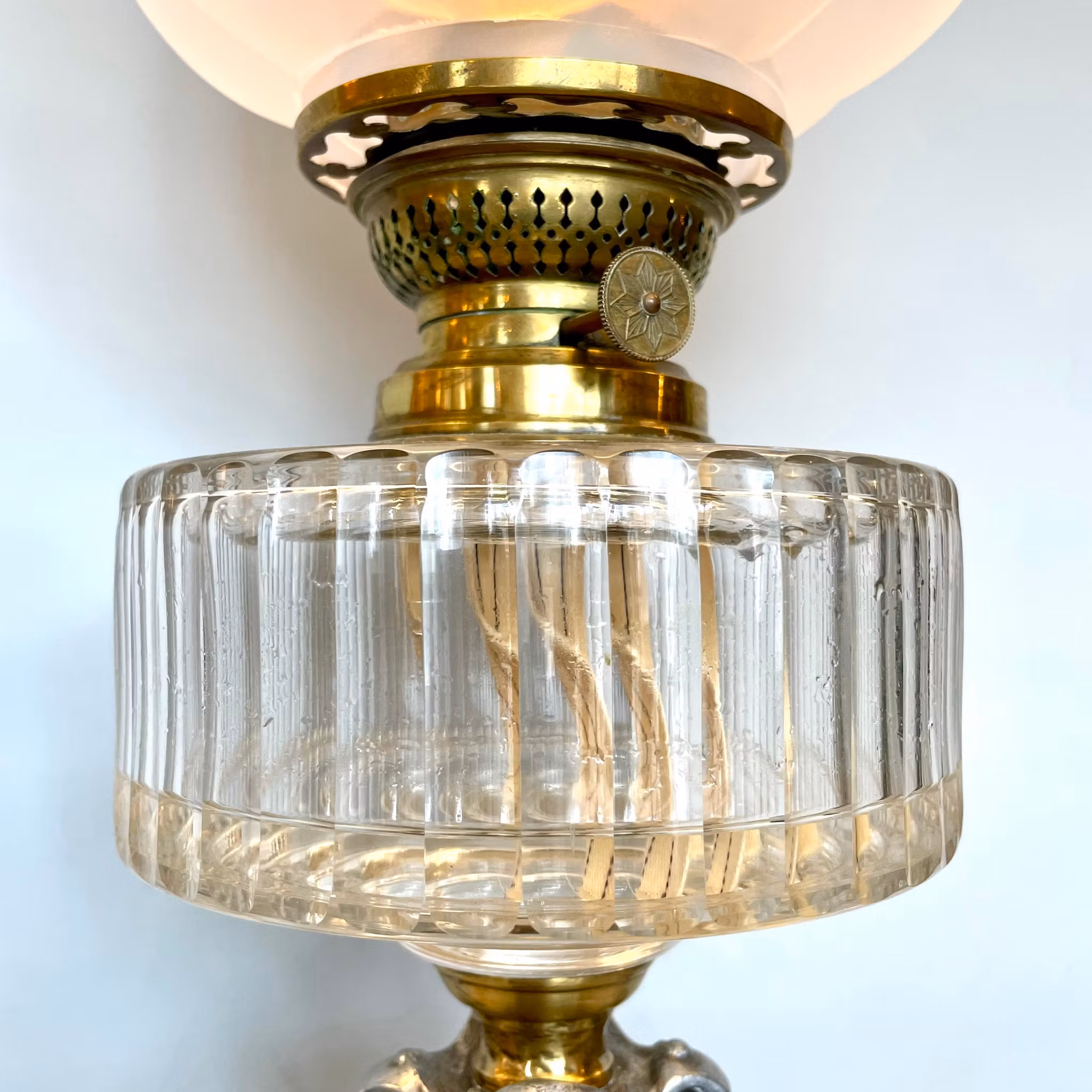 Fotogenlampa med 14''' brännare i polerad mässing.