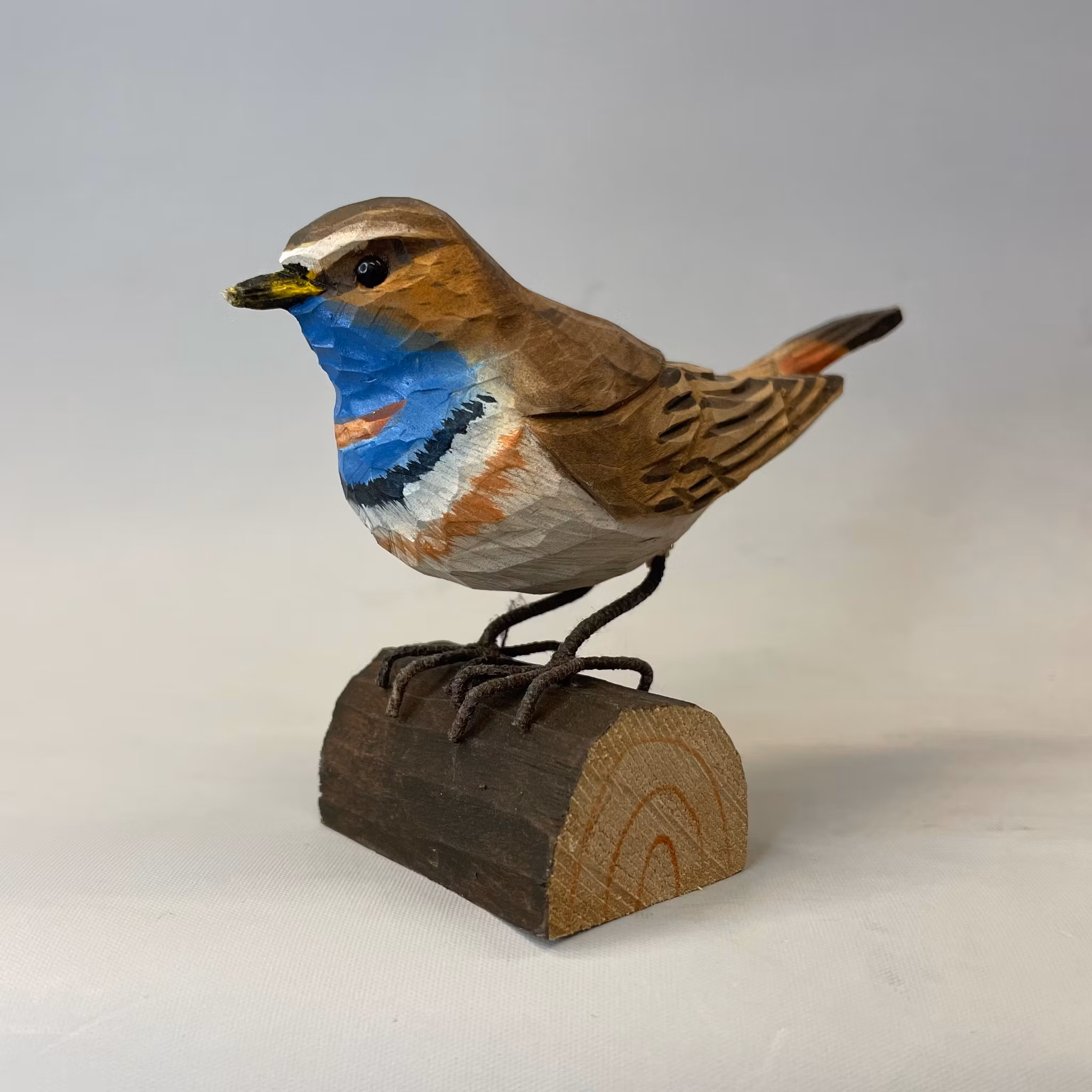 Träfågel: blåhake 245 kr I lager Lägg i korgen Artikelnummer: P065 Dela Information Väldigt naturtroget träsnideri i form av en blåhake.Höjd cirka 10 cm.