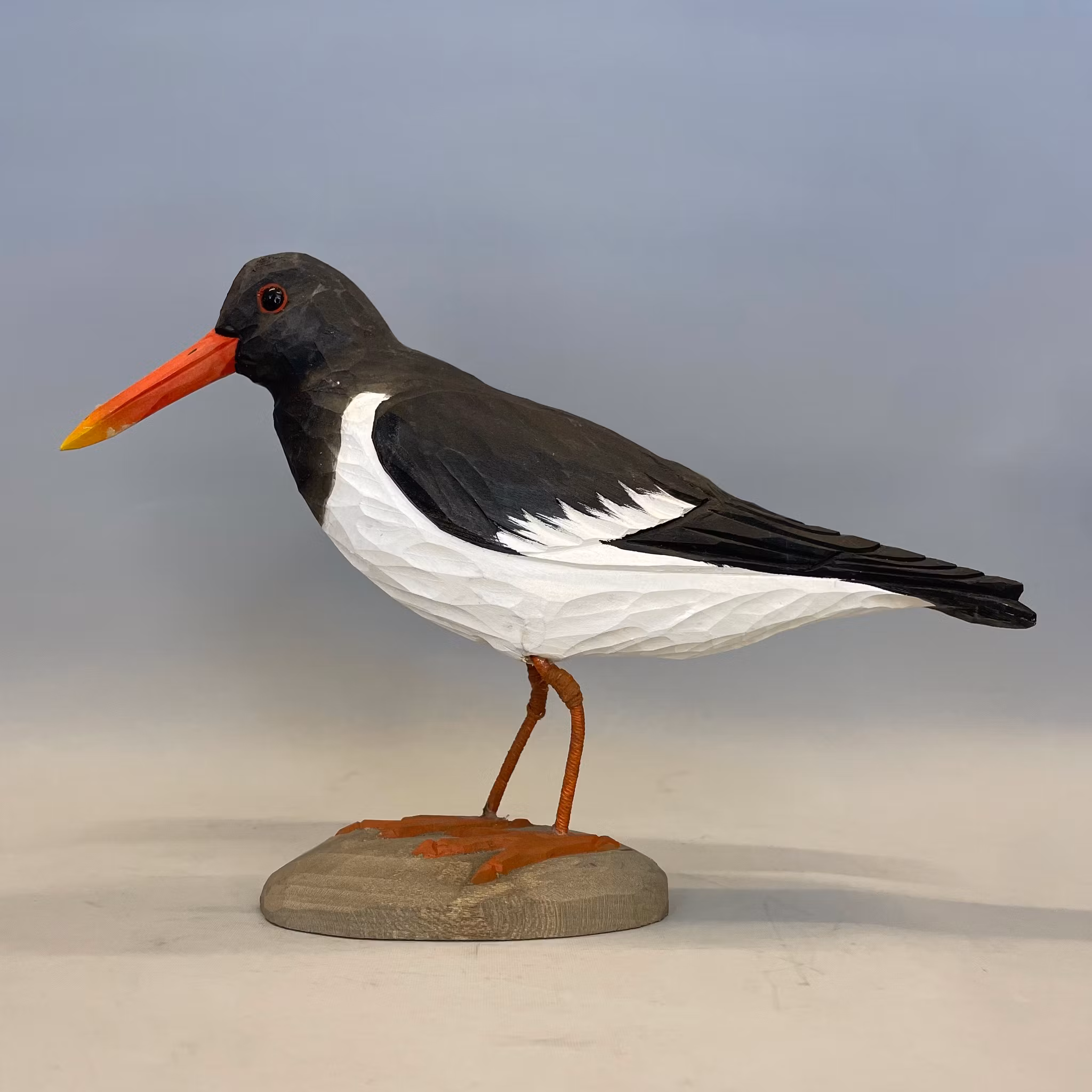 Träfågel: Strandskata 495 kr Produkten är tyvärr slut i lager. :( Artikelnummer: P124 Dela Information Väldigt naturtroget träsnideri i form av en strandskata.Höjd cirka 17 cm.