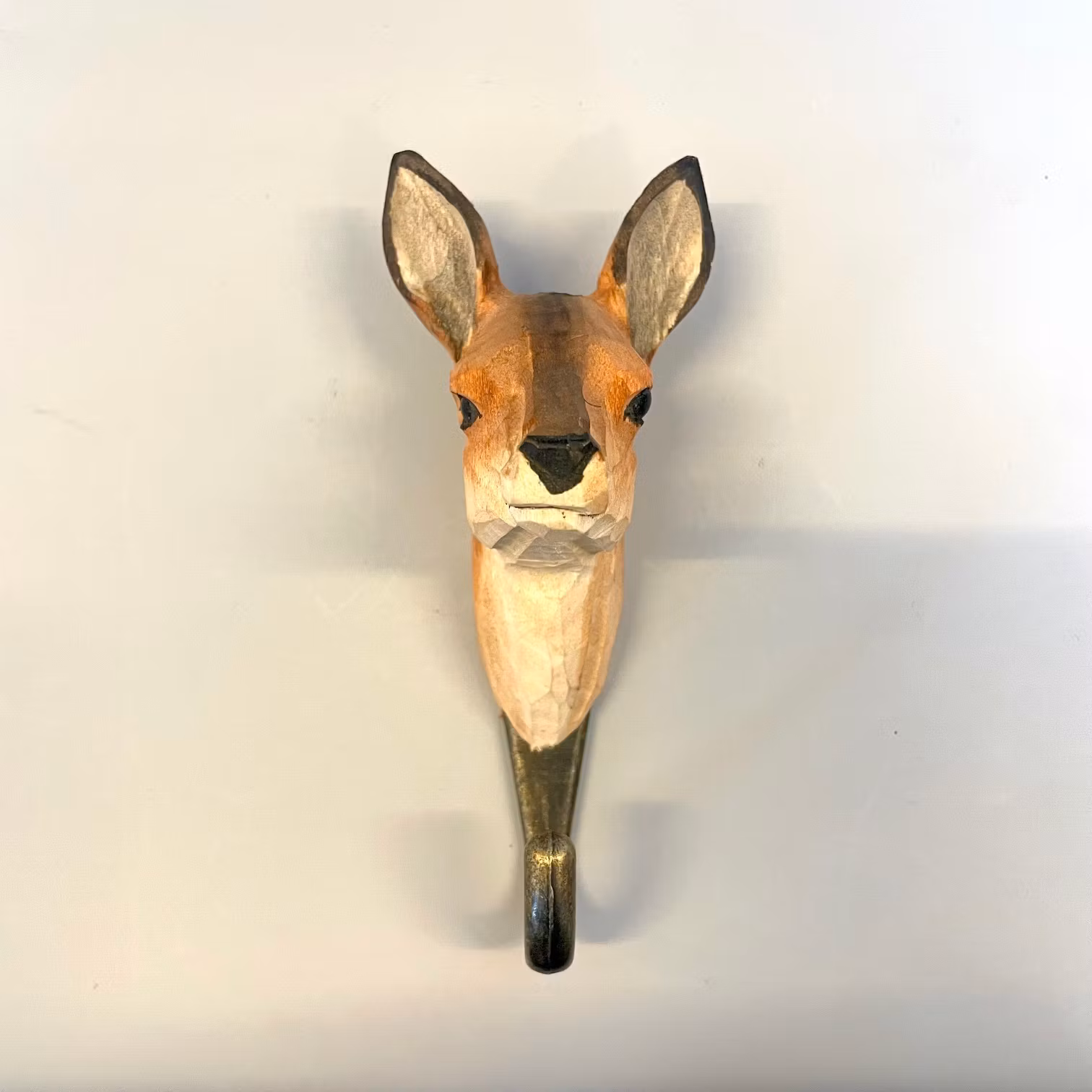 Väggkrok stor: Rådjur 245 kr I lager Lägg i korgen Artikelnummer: P155 Dela Information Väldigt naturtroget träsnideri i form av ett rådjur på en rejäl väggkrok.Storlek: cirka 5,5 cm bred och 13 cm hög.