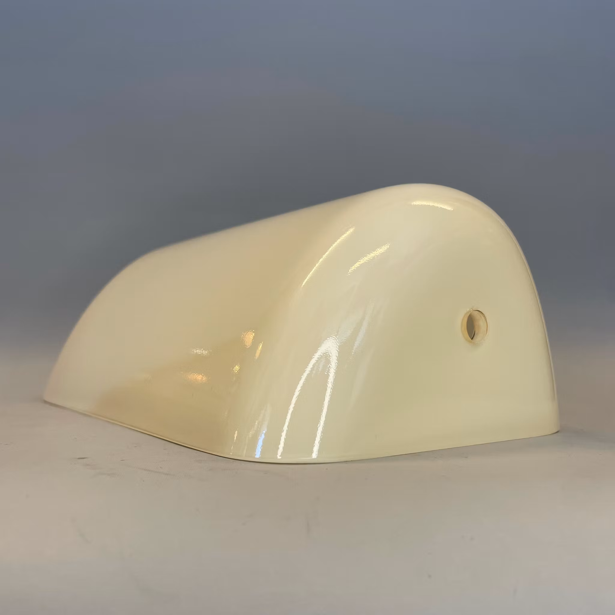 Denna klassiska lampskärm passar till större bankirlampor. Den är vaniljgul utanpå och vit inuti. Dessa lampor kallas också bibliotekslampor eller Amerikalampor.