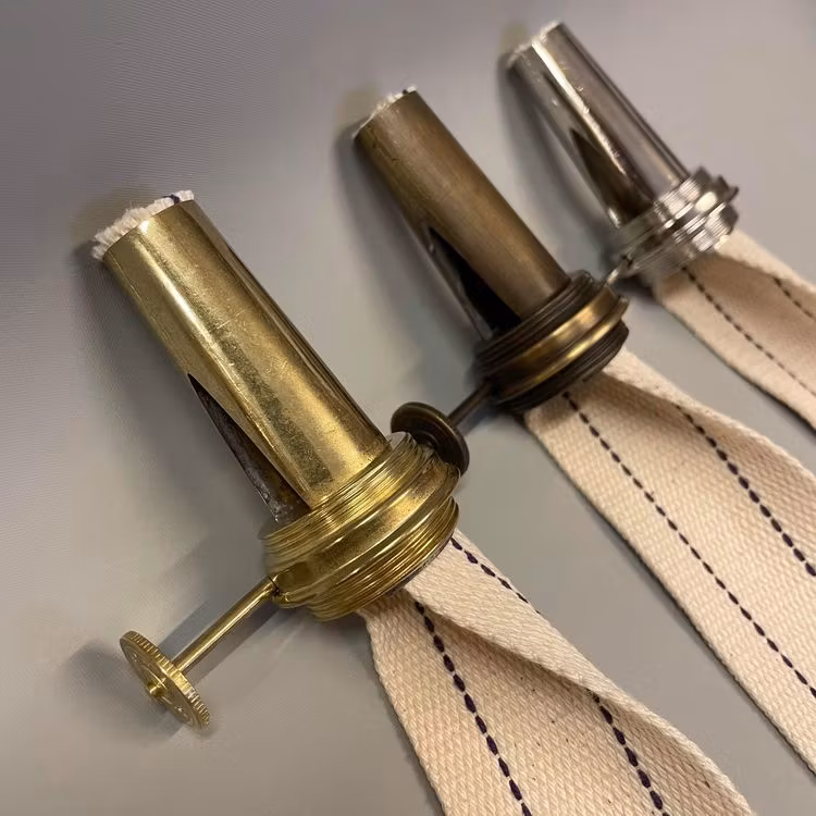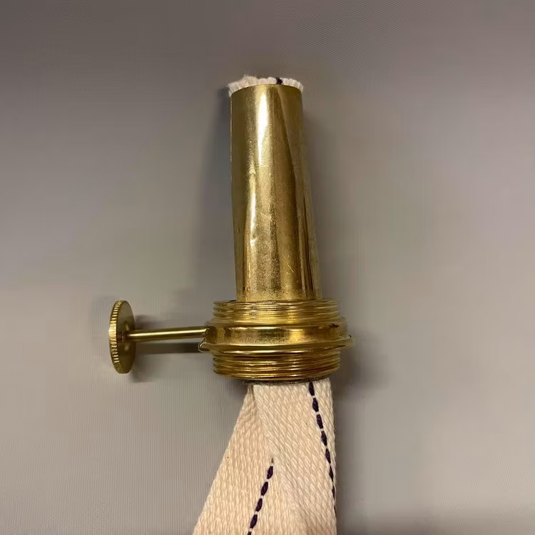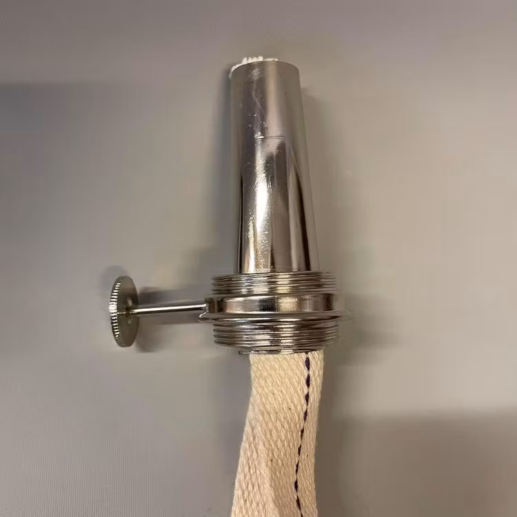 Innerdelen(kona och drevhus med vekratt) till rundbrännare i storleken 10''' i polerad, patinerad eller förnicklad mässing inklusive veke.