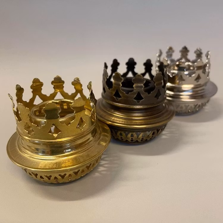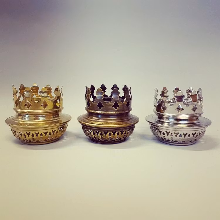 Ytterdelen (luftgalleri och krona) till rundbrännare i storleken 6''' i polerad, patinerad eller förnicklad mässing.