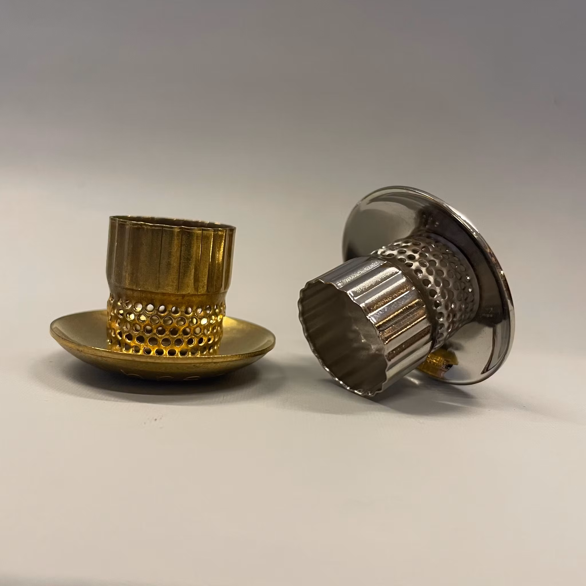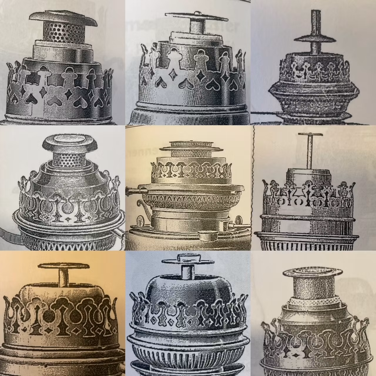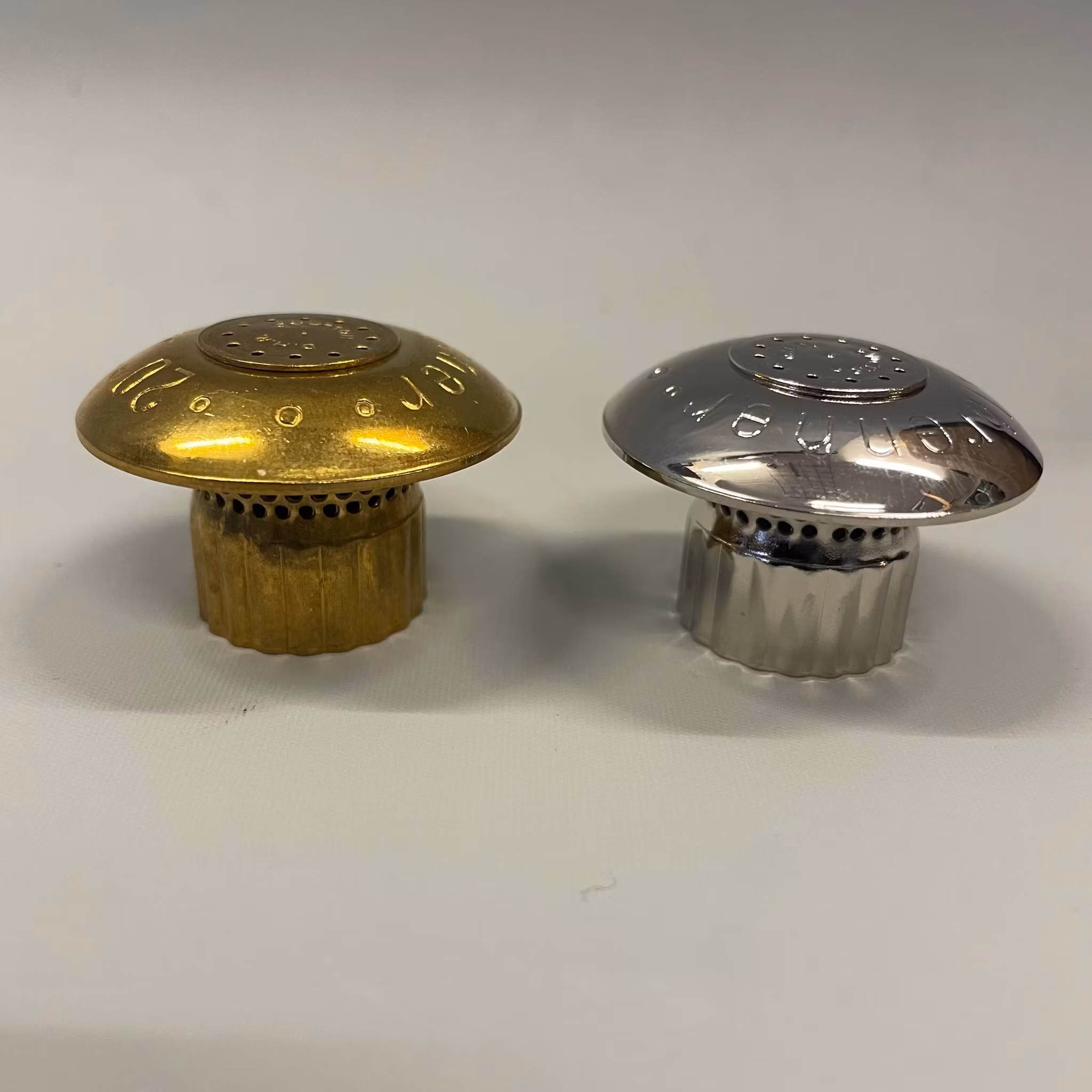 En lågspridare är som en liten "hatt" som sitter inuti de större typerna av brännare, se sista bilden. De har lufthål som garanterar en stor och bra låga med syretillförsel från flera håll. Alla brännare med lågspridare ska ha ett linjeglas med en "kula" i höjd för lågan för att inte glaset ska riskera att spricka. Dessa brännare kallas matadorbrännare och glasen kallas matadorglas. Förr i tiden så tillverkades det en uppsjö av olika lågspridare(som ni kan se på sista bilden) och det är inte ofta man hittar rätt till just sin gamla brännare, men ibland fungerar de även utan, eller med "fel" modell. Mät inuti din brännare vilken storlek som kan passa just dig eller kontakta oss för rådgivning.