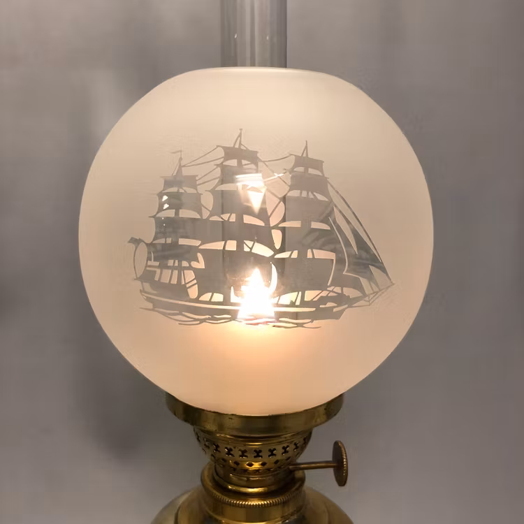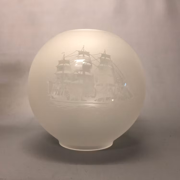 Vacker klotformad kupa, helt frostad med motiv av fullriggare.
