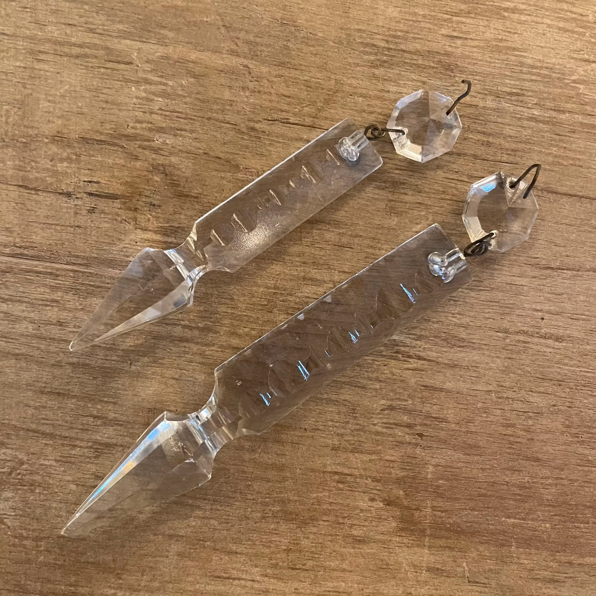 Begagnade glasprismor från diverse gamla lampor. Kan finnas både nagg, fläckar och skönhetsfel.