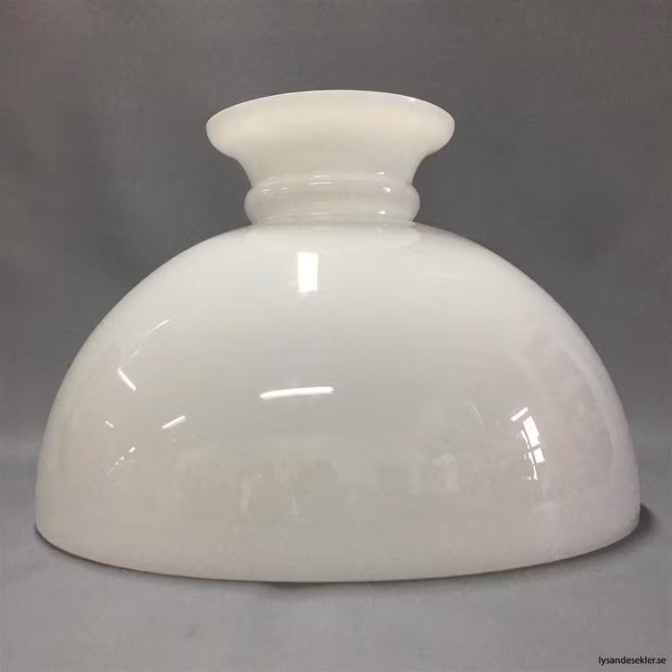 Denna opalvita släta Rochesterskärm har en nedre fattning på cirka 325 mm i diameter och är således anpassad för skärmringar på minst 330 mm i diameter.