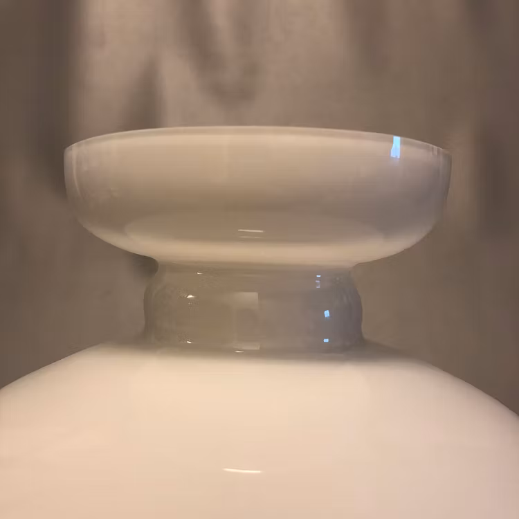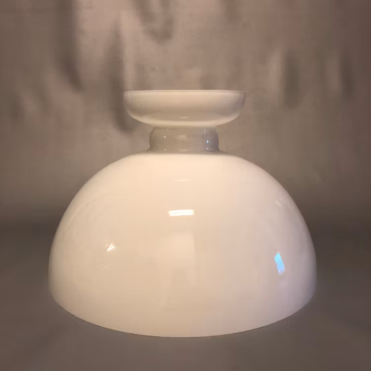Denna opalvita släta Rochesterskärm har en nedre fattning på cirka 345 mm i diameter och är således anpassad för skärmringar på minst 350 mm i diameter.