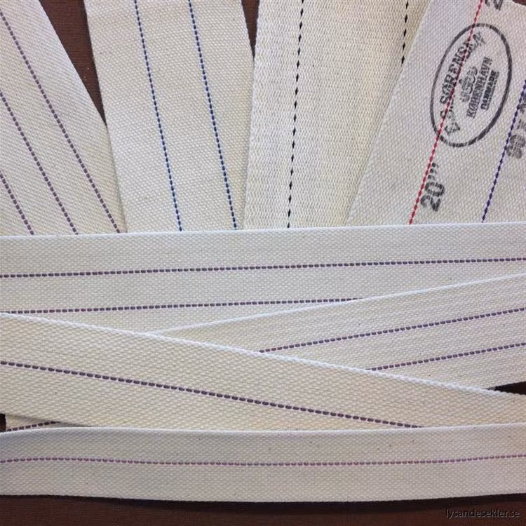 Hos oss hittar du alla slags vekar i bredder mellan 1 - 120 mm. Vi har både snörveke, flatbrännarveke och rundbrännarveke. Behöver du en annan bredd än vad vi kan erbjuda? Då rekommenderar vi att du kombinerar 2 eller 3 vekar och syr ihop dessa kant i kant med en fin bomullstråd för att få rätt bredd för just din brännare.