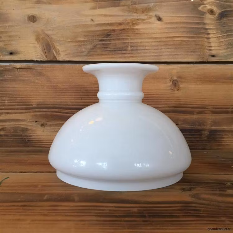 Denna opalvita släta vestaskärm har en nedre fattning på cirka 124 mm i diameter och är således anpassad för skärmringar på minst 125 mm i diameter.