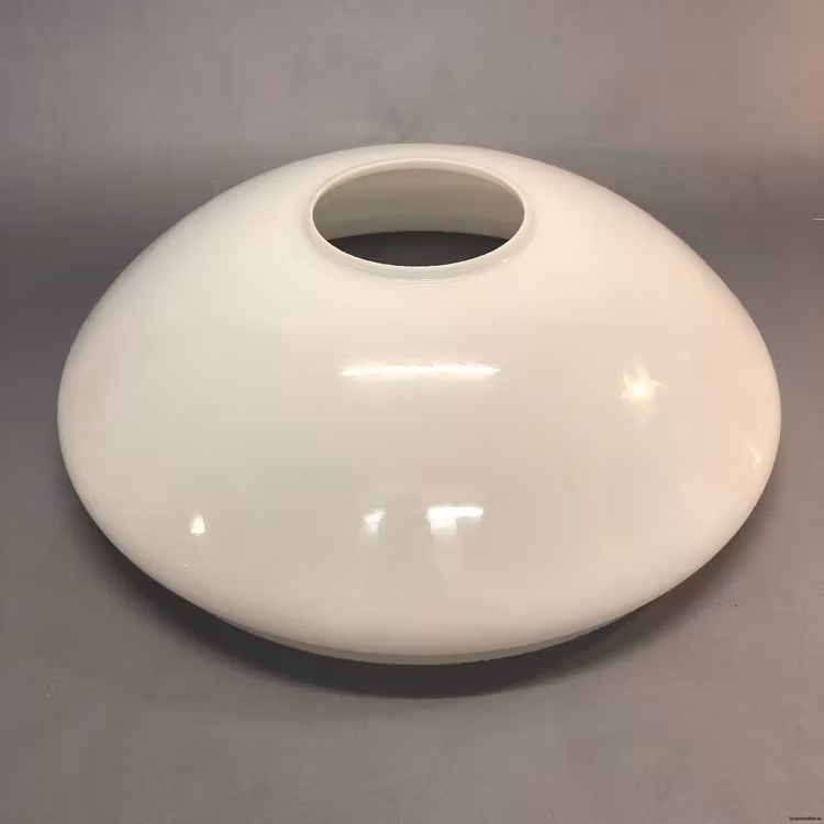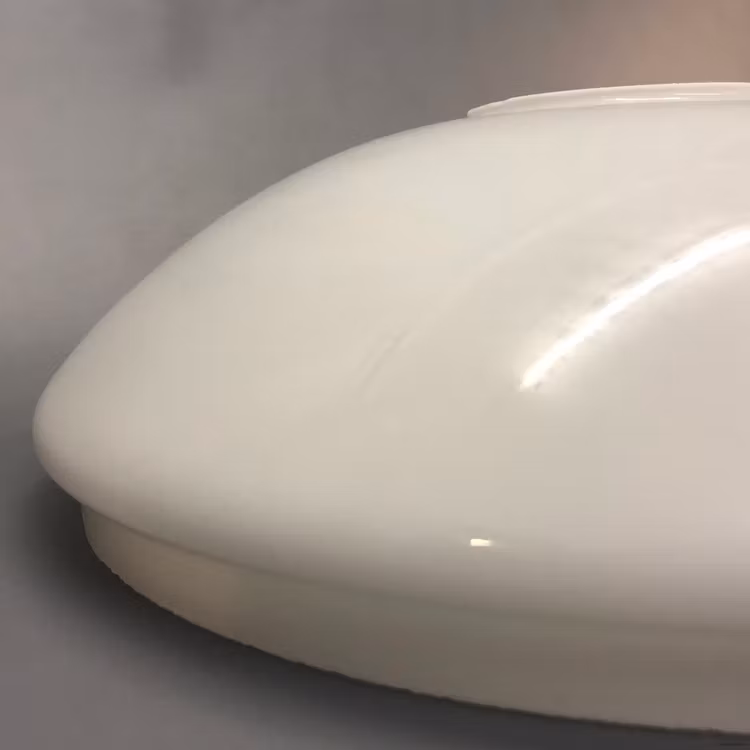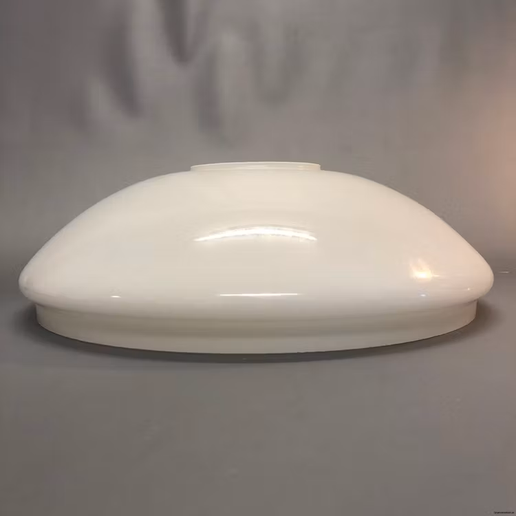 Denna opalvita släta kraglösa vestaskärmen har en nedre fattning på cirka 293 mm i diameter och är således anpassad för skärmringar på minst 295 mm i diameter.