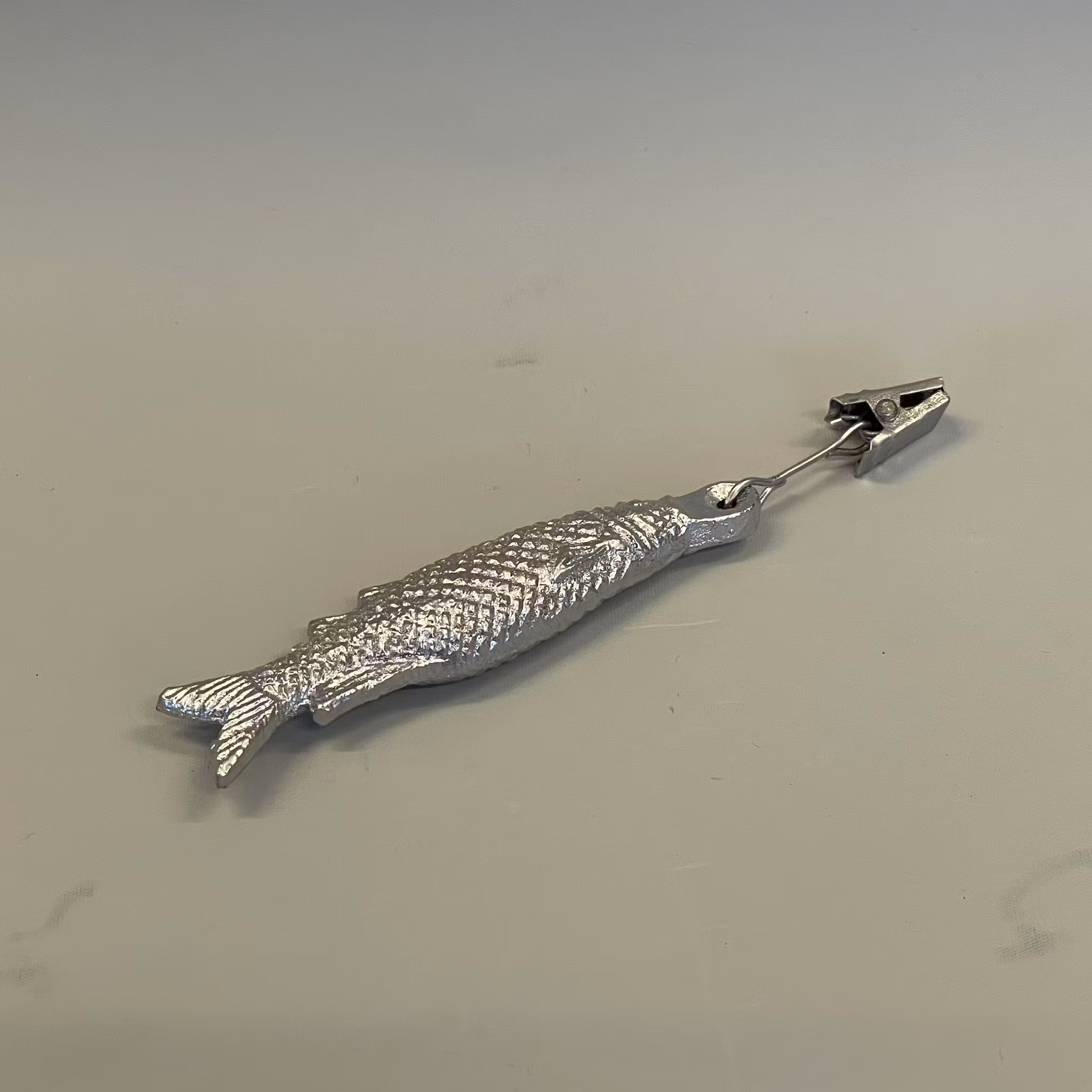 Duktyngd fisk järn 50 kr I lager Lägg i korgen Artikelnummer: s003 Dela Information Riktigt bra duktyngd i silvermålat järn.Längd enbart fisken cirka 10 cm. Vikt cirka 85 gram.