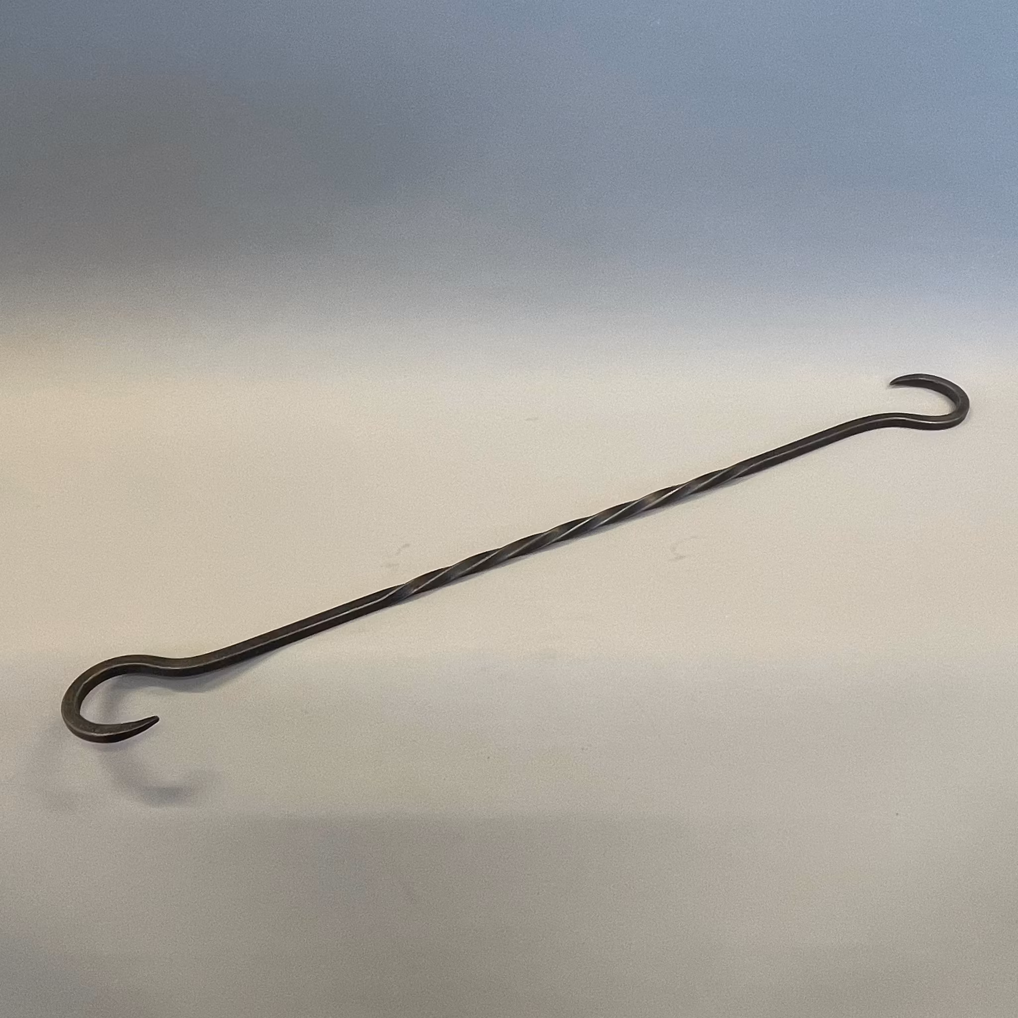 S-krok 50 cm i järnsmide 195 kr Produkten är tyvärr slut i lager. :( Artikelnummer: s006 Dela Produktbeskrivning Handsmidd krok av järn. Snygg S-formad länkkrok med vriden mitt.Cirka 50 cm lång.